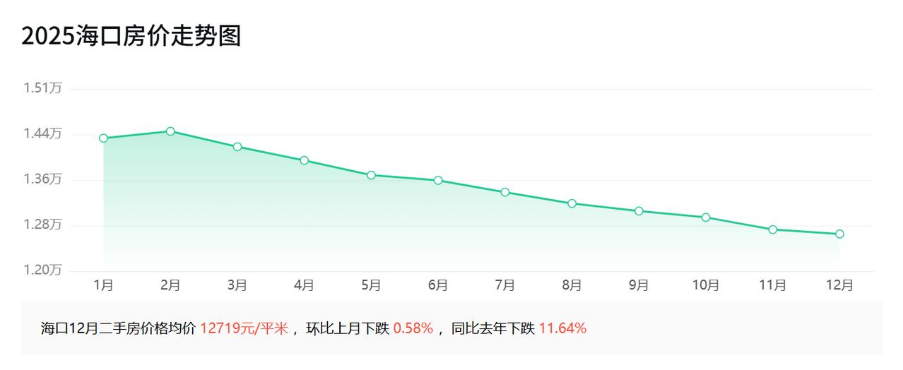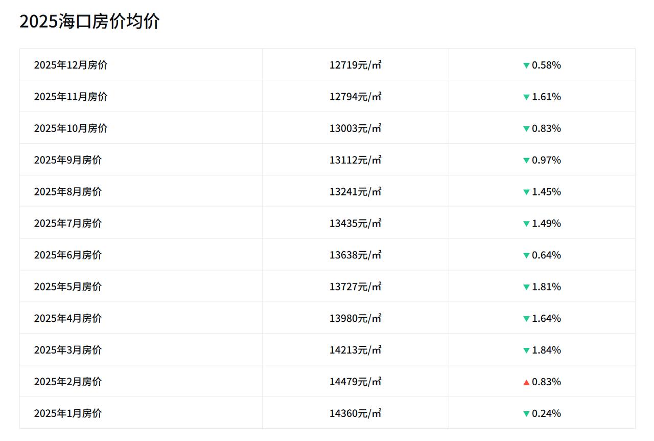 2015年11月,海口房价均价7257元; 2016年11月,海口房价均价7446元; 2017年11月,海口房价均价11880元; 2018年11月,海口房价均价15344元; 2019年11月,海口房价均价15007元; 2020年11月,海口房价均价15253元; 2021年11月,海口房价均价17924元; 2022年11月,海口房价均价17709元; 2023年11月,海口房价均价16456元; 2024年11月,海口房价均价14473元; 2025年11月,海口房价均价12749元。 回顾海口十年的房价,2025年11月的12749元相比2015年11月的7257元,增长了5492元,涨幅达75.68%。相比2025年1月的14360元,下降了1611元,环比2025年10月的13003元,下降了254元。 2025年前三季度,海口GDP达1784.96亿元,按不变价格计算,同比增长4.9%。分产业看,第一产业增加值81.23亿元,同比增长3.7%;第二产业增加值275.90亿元,同比增长7.3%;第三产业增加值1427.83亿元,同比增长4.5%。 截至2024年末,海口市常住人口约303.14万人,城镇化率83.52%,在海南人口排名第一,在全国人口排名178。 海口房价2025年11月比2025年1月下降了1611元,下降幅度不小,价格基本上回归到2017年水平。不过也得看区域,核心区域的房价不降反增,远郊地区房价下跌明显,拉低了整体平均价格。 那么,在刚刚过去的11月份,大家对海口的楼市有什么切身的体会,咱们在评论区聊一聊。 数据说明:以上均价数据,均来自安居客数据,仅作为分析参考,旨在反映海口近十年的房价走势,不能准确映射当地实际房产价格。因为新房、二手房、不同区域不同位置的房价差别较大,占比也不同,仅通过一个均价不能一概而论。