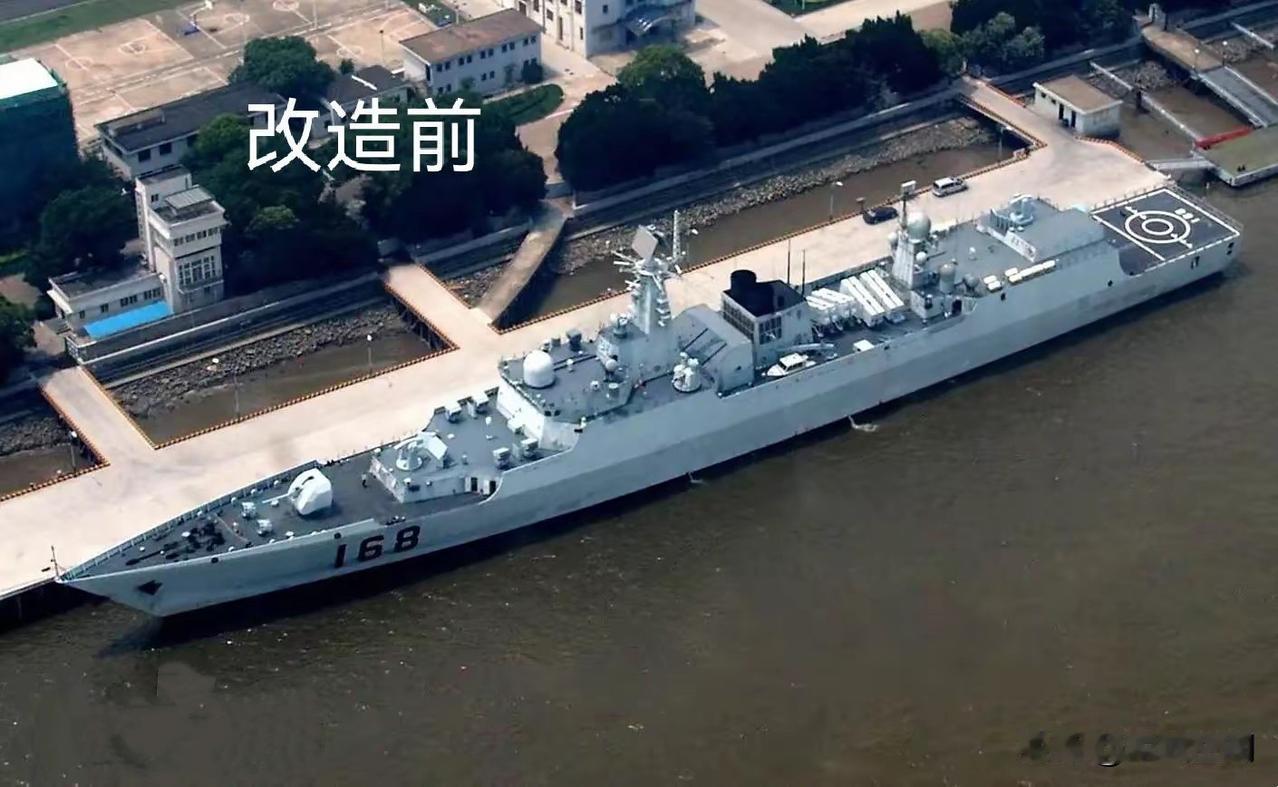052B型“广州”舰已完成改装,但甲板浪费严重。 我们从改装前后的对比照片来看,改装最明显的地方莫过于取消了前后两座SA-N-12“灰熊”导弹发射装置(备弹48枚),和4套反潜火箭深弹发射器(备弹48枚)。取而代之的是4座8联装共32单元的H/AKJ16型垂直发射系统,但原本火箭弹位置却空空如也,舰尾SA-N-12发射位则是掏空扩展了直升机机库。 其实前甲板位置完全可以学习西方,装个48单元的近防垂发系统。