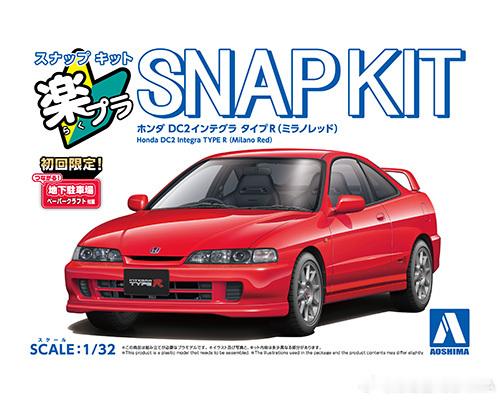 百年青岛社12月新品Honda DC2 Integra Type R「98 Spec」1/32 Snap Kit 上线!被称为“98 Spec”的 DC2 Type R,这次以免胶、免涂装的 Snap Kit 形式登场,新手也能轻松拼!• 仅 28 个零件,上手无压力• 标配 16 英寸轮毂• 可选择低趴版本组装• 多色部分用贴纸还原,完成度依然在线提供 黑 / 白 / 黄 / 红 四种经典车色。初回生产还附带可连接式场景纸模型特典。手办模型青岛社拼装模型手工
