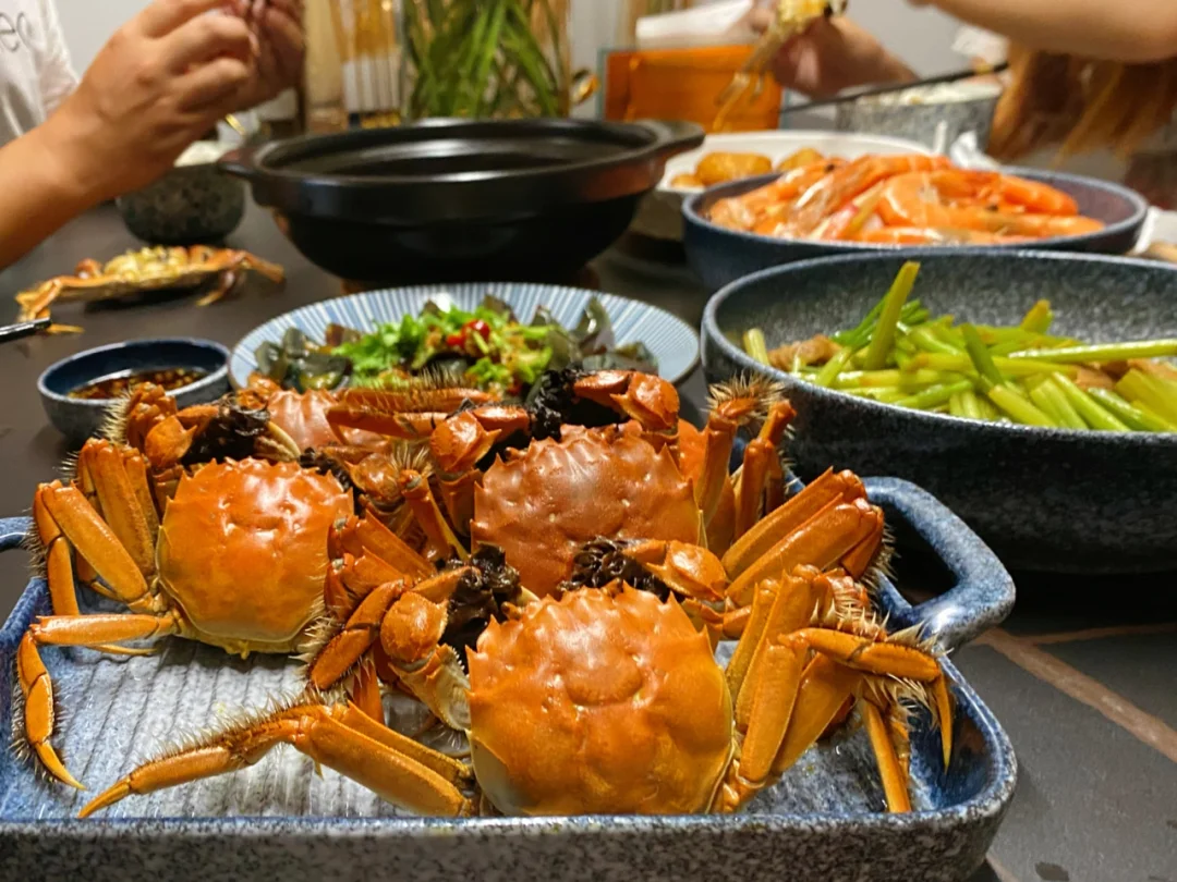 晚饭: 奥尔良烤翅 西芹炒肉 白灼虾 蒸大闸蟹 姜汁松花蛋 红绕肉 图没有好好拍,拍了两张突然没电手机关机了😂 今天买了大闸蟹,说实话现在的大闸蟹还没有到真正的时候,再过半个月一个月估计最肥~ 直播间买的随机两扎泡泡 26.8 收到太惊艳了,好大一束。