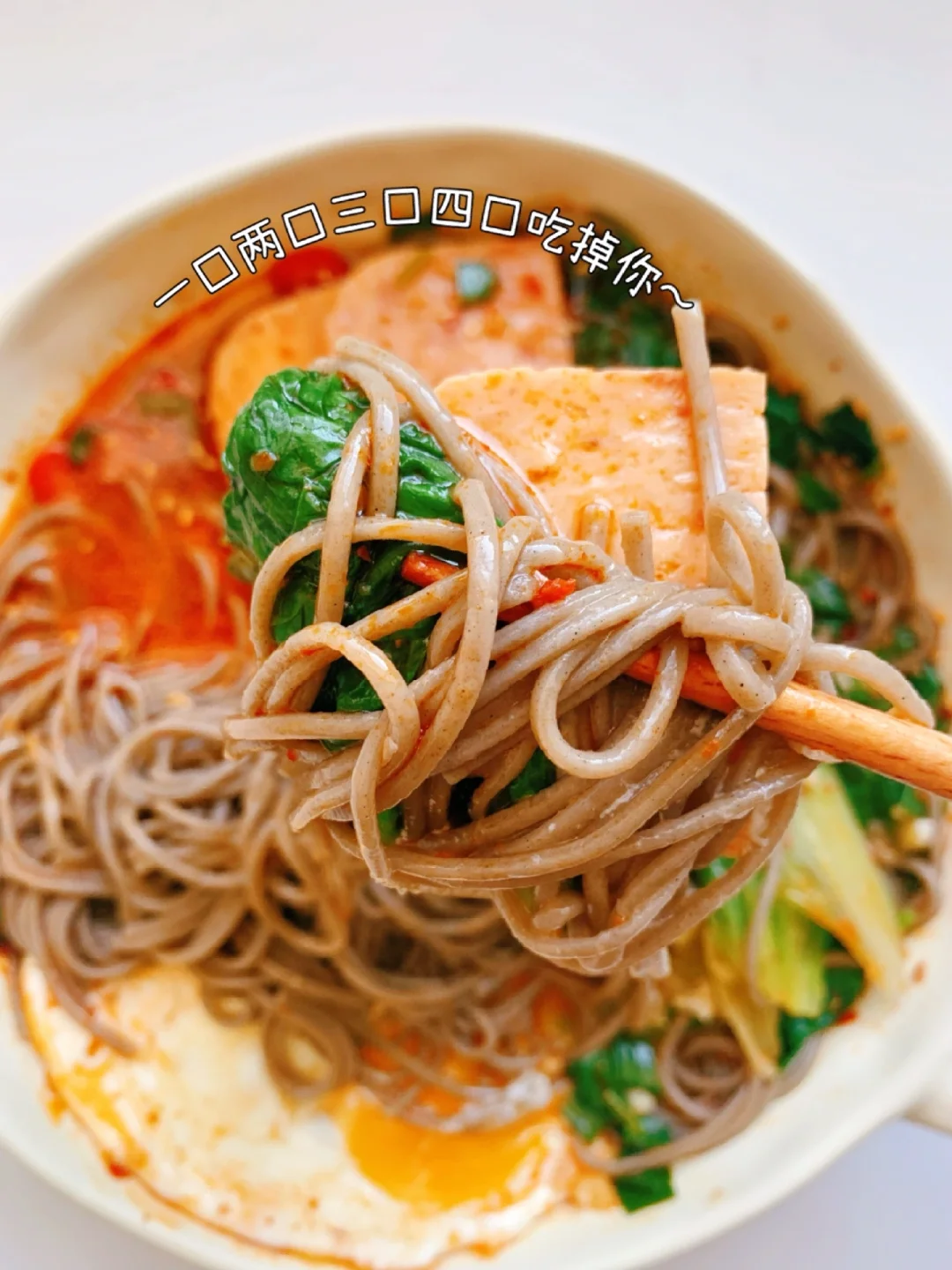 减脂餐23‼️十分钟快手面条🔥酸酸辣辣荞麦面