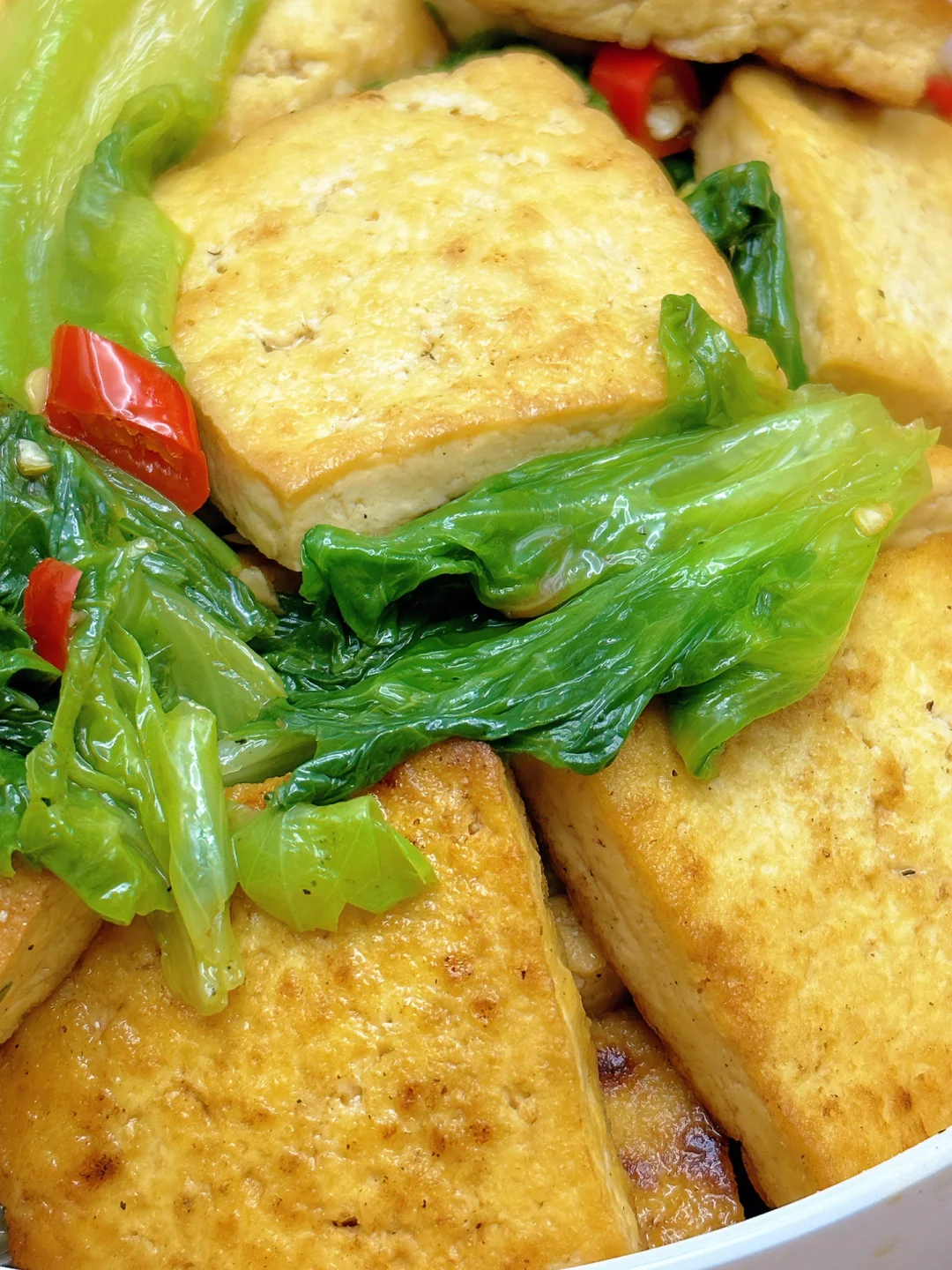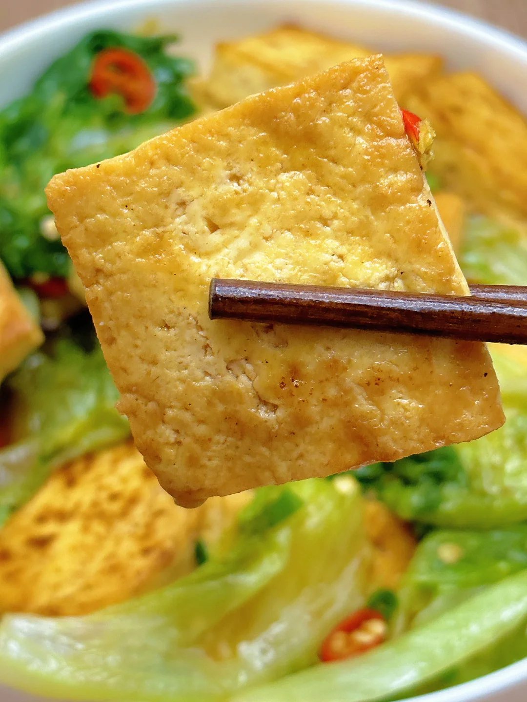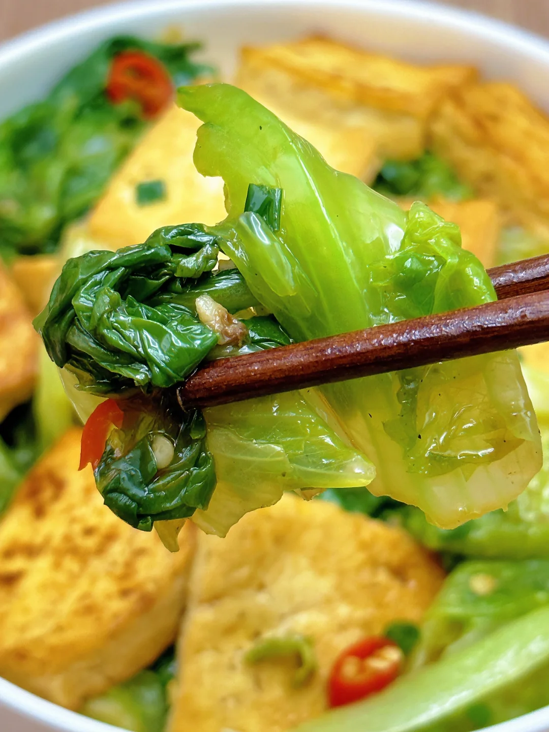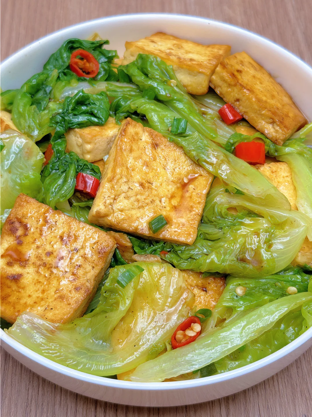 减脂期的姐妹们一定要试试这个生菜炒豆腐[哇R]巨巨巨好吃!!脆爽脆爽的生菜,搭配豆腐焦香软嫩,低卡又饱腹,爽口不腻,豆腐吸满了汤汁贼入味,味道真的嘎嘎的香,好吃又解馋,膳食纤维搭配蛋白质真的绝了!做法简单,姐妹们冲鸭~ 🥗食材:生菜、豆腐、小米辣、蒜末 [种草R]详细做法如图所示~几分钟轻松搞定