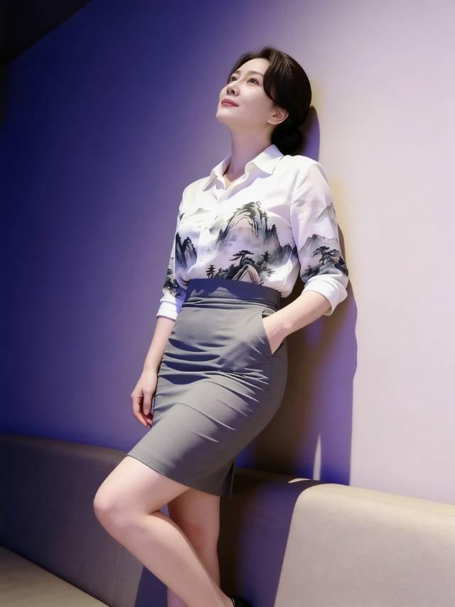水墨衬衫的柔和刚。 水墨晕染的温柔,碰撞高腰灰裙的利落线条,同一场景下,展现出不同姿态的优雅。紫调光影漫过衣摆,每一次转身,抬手都藏着松弛与精致,不张扬却自带焦点,把职场的知性与日常的温柔平衡得恰到好处,这就是穿搭赋予的专属气场。