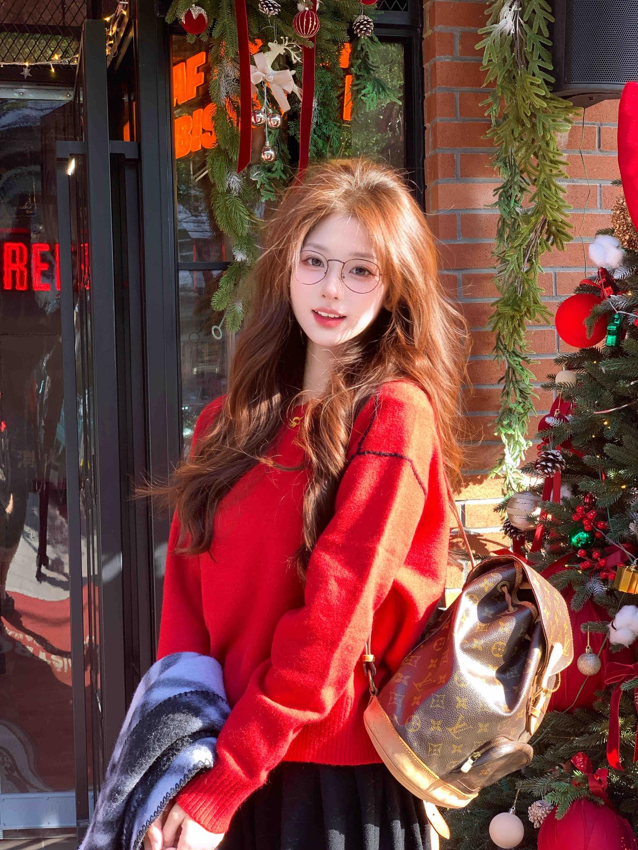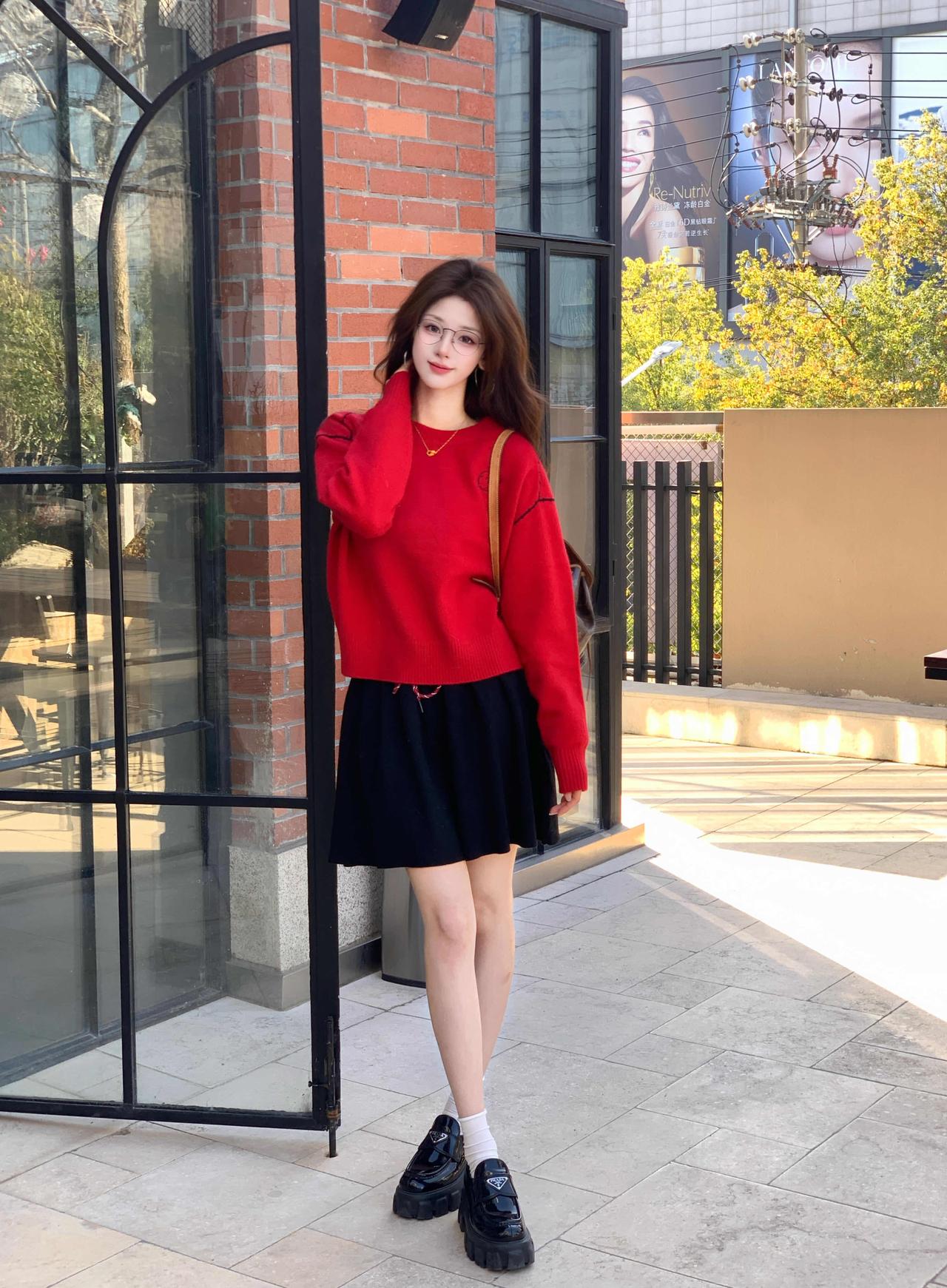 🍎🎄˗ ⋆ 。˚12月 街头的圣诞气息越来越浓了,忍不住穿上喜欢的红毛衣和圣诞老人赴一场冬日的约❄️ 最近超喜欢这种经典的红黑配色,踩上一双小皮鞋👞 走在落叶满地的街道上,仿佛走进了一部老电影🎬 不需要特定的 pose,只要迎着光, 衣服和心情都会跟着亮起来✨ 今日份的快乐,是红色给的。