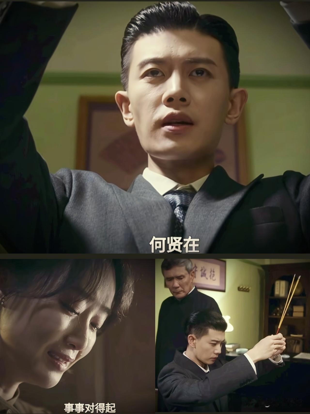何贤三省吾身的时候 真的看泪目了 今日三问,何贤再也不像以前一样说“何贤诸事,无违本分,对得起天地良心”。 大家在庆祝金融胜利时,只有何贤担心乔仁宇的安危,做好了一切营救的计划,可还是来不及了。 今日三问,何父只是轻轻地拍了拍他的肩膀,看似什么都没说,可又好像什么都说了! 何贤有愧,愧疚难言,或许以后很多个夜晚,他都会这样多跪上一会儿,为不得已的欺瞒,为救不了同伴忏悔。 所以,今晚的何父三问,何贤捧香只有沉默,无声,沉重! 如果你是何贤,在家国大义和私人情意上,你如何取舍?