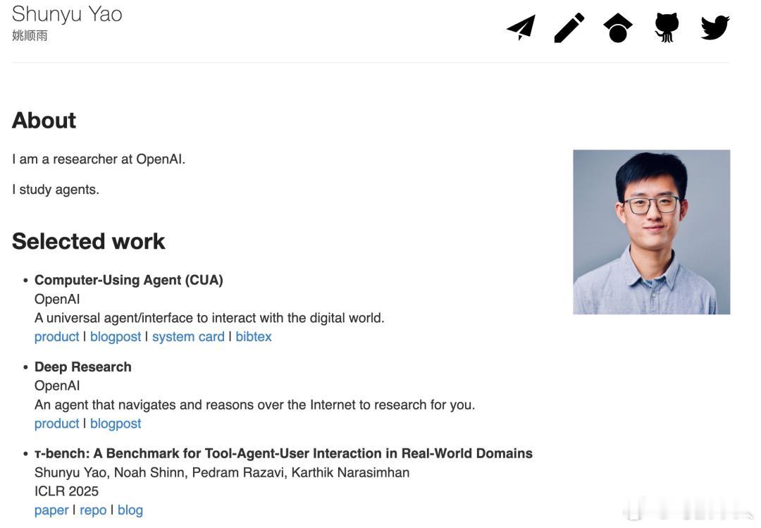 OpenAI前研究员姚顺雨入职腾讯 之前就有人说他从OpenAI离职后入职腾讯了,年薪一个小目标!当时还辟谣了,现在不就坐实了,98年的小伙儿,清华的本普林顿的博,去年毕业就进了OpenAI开发智能体,是今年OpenAI首批智能体operator和deep research的核心贡献者,他的研究方向主要是建立语言智能体与世界之间的互动,姚顺雨认为AI的下半场开战,评估要比训练重要,现在是腾讯“CEO/总裁办公室”首席AI科学家,同时兼任AI Infra部、大语言模型部负责人,年轻有为腾讯回应OpenAI前研究员姚顺雨入职
