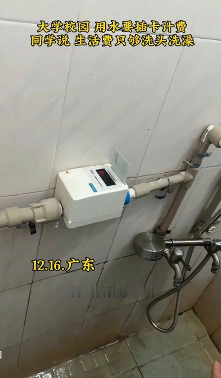 现在有些地方的学校是真的不像话啊,洗个头热水费就要9元,5秒钟就收费5毛! 近日,广东某学校一个女生刷卡用水, 洗个头就计费9元,她的同学也用了6元。 离谱的是,她打开水龙头仅仅放水5秒, 计费器上就扣除了5毛, 她问AI如果按照这个单价洗头15分钟收费多少? AI说大概是90块! 女生说, 她和同学的洗头时间并不长, 但感觉水表跳的比命还快, 让她有些无法接受。