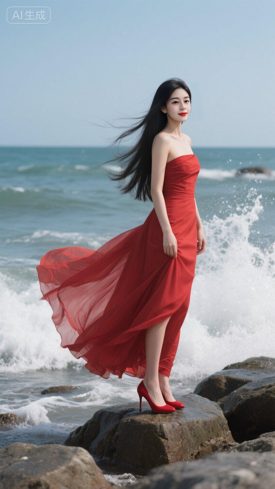 红色 红色连衣裙 旗袍美女