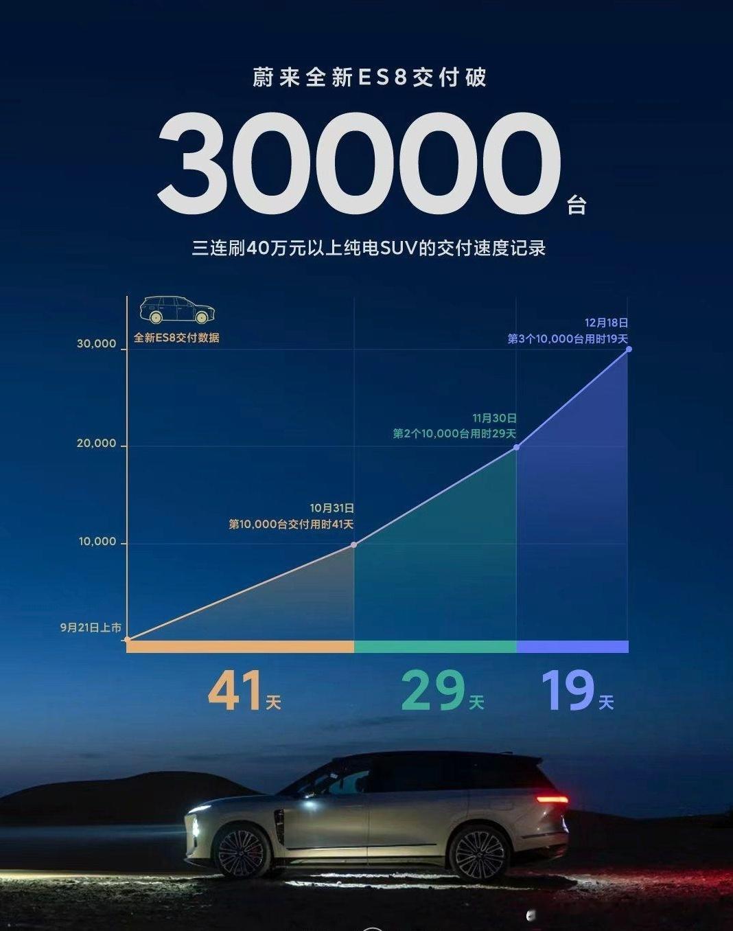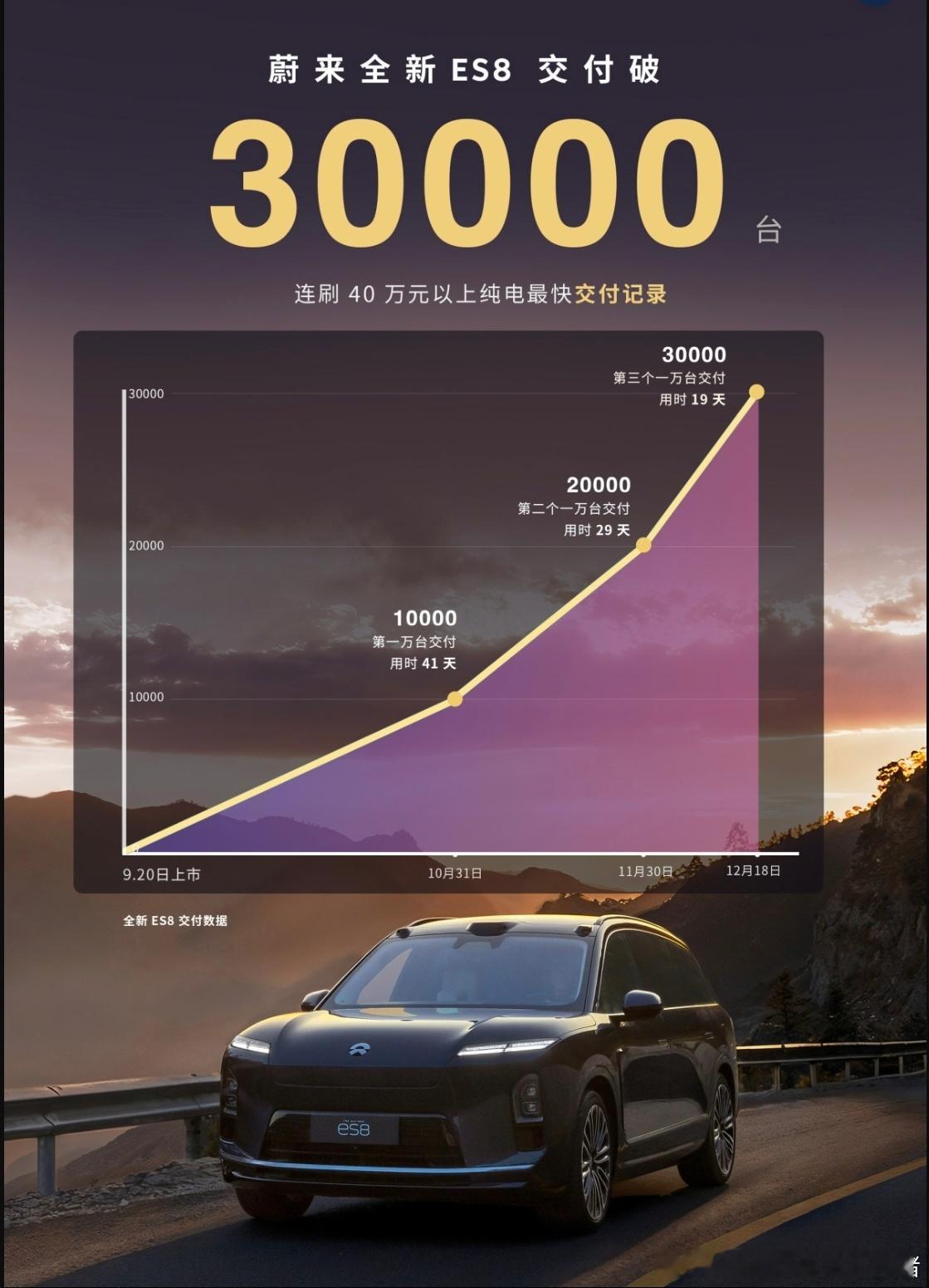 上市41天狂卖1万台,29天后再破2万,19天直接冲到3万台——全程只用了89天!直接刷新40万以上纯电SUV最快破三万纪录!🚀ES8现在产能拉满,交付提速!大空间+超长续航,全家出行一车搞定,豪华车主换购首选~纯电大三排SUV的时代真的来了!这波节奏属于蔚来全新ES8👏 蔚来全新es8大v聊车