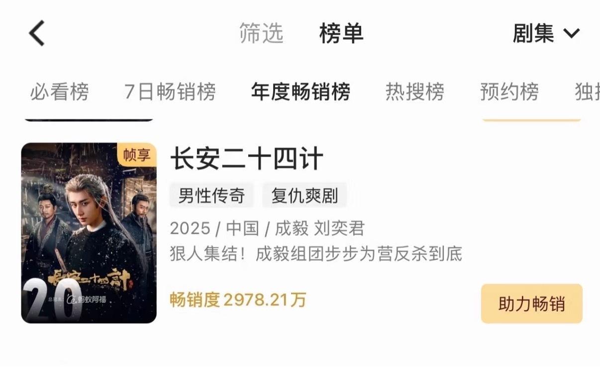 成毅长安二十四计进入优酷畅销榜年榜