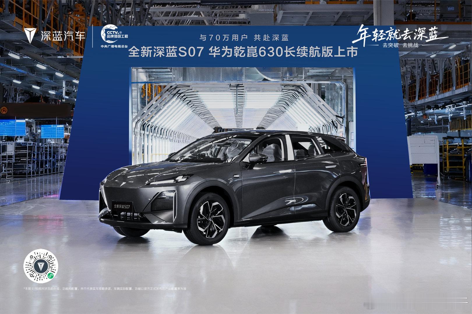 全新深蓝S07 华为乾崑630长续航版全球上市限时权益后到手价15.39万元起超长续航,极速补能数智生产,品质保证与70万用户共赴深蓝同行三千万一路新长安深蓝汽车
