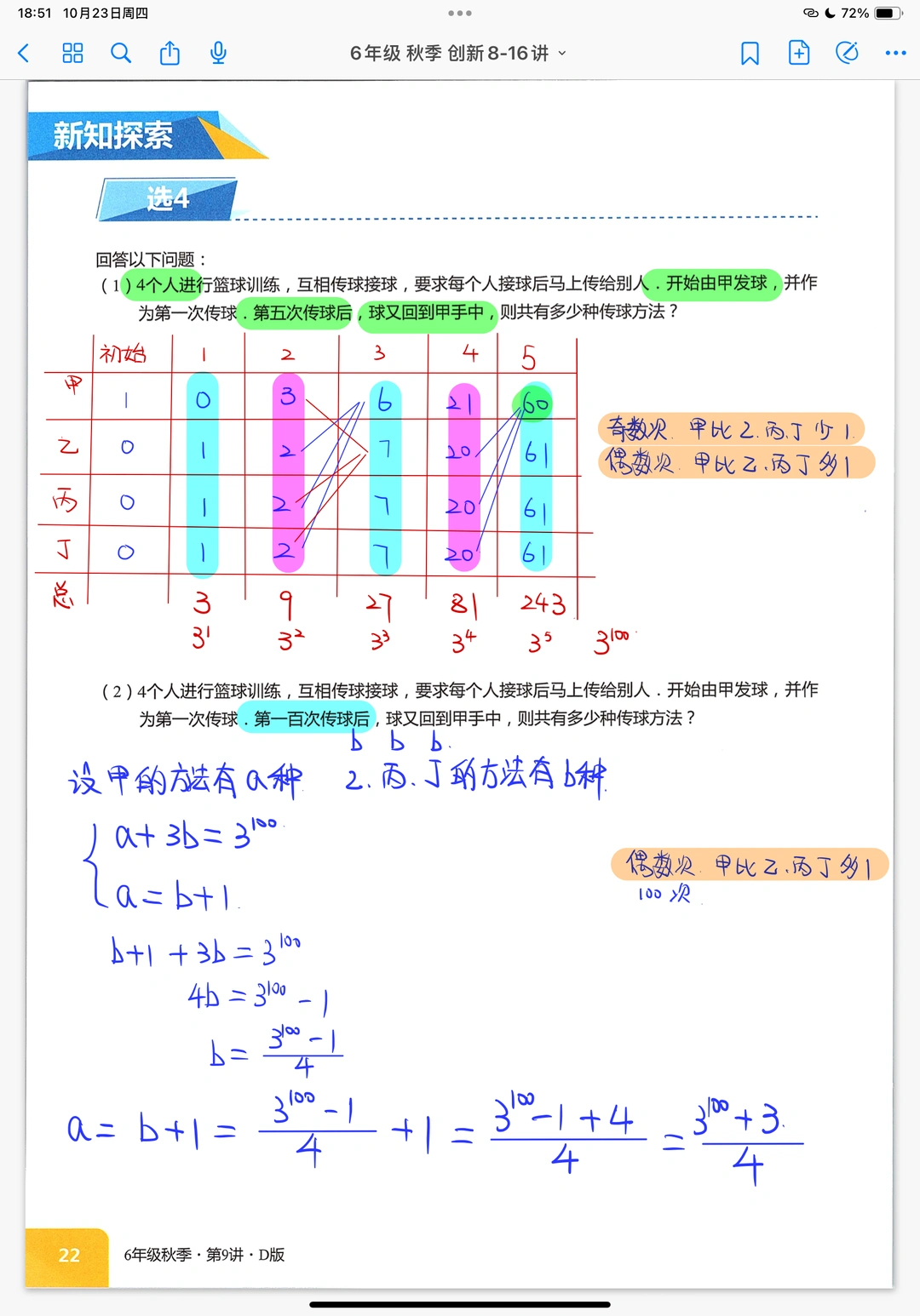 传球法、递推和归纳六年级奥数