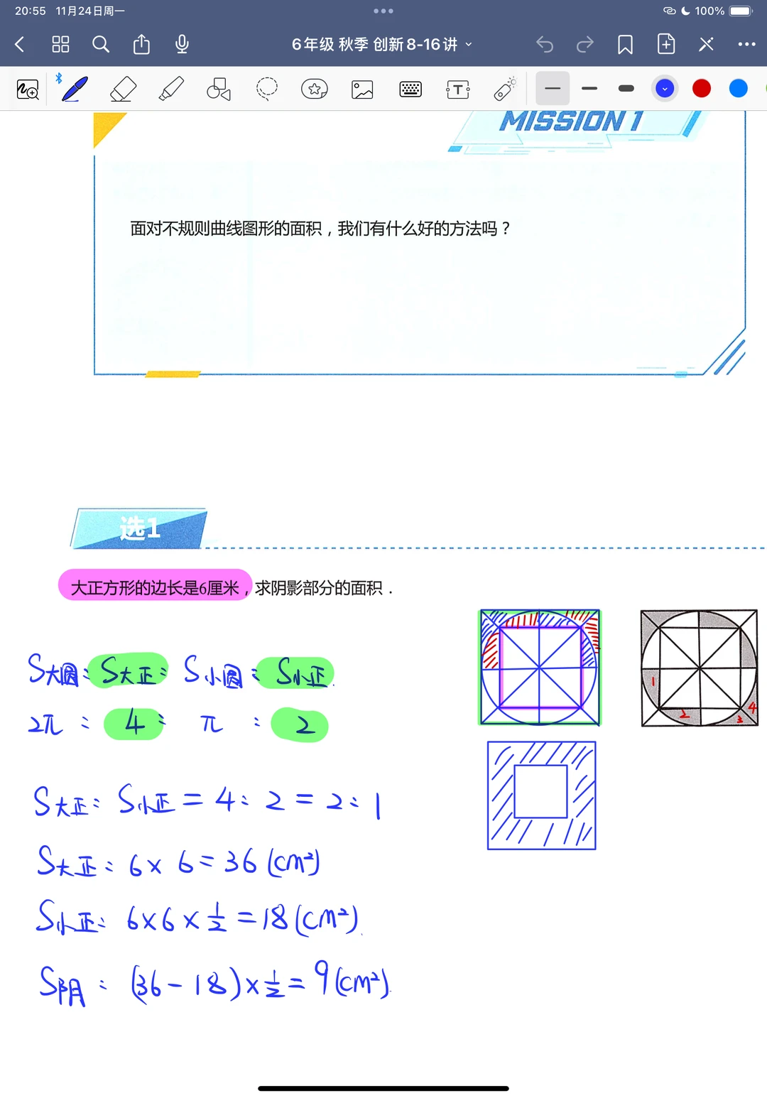 圆的面积 求阴影面积 六年级数学笔记