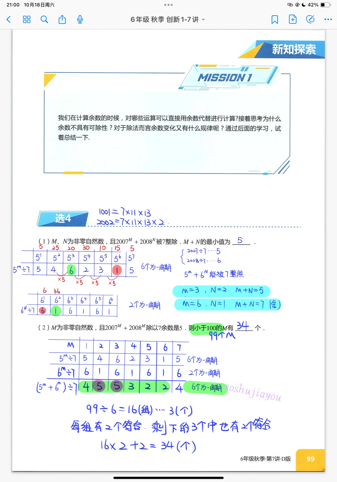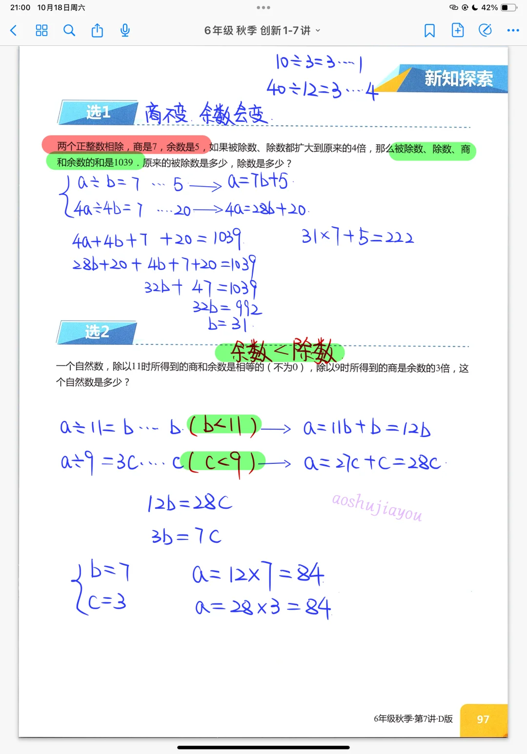 余数问题综合复习 六年级秋季创新班奥数