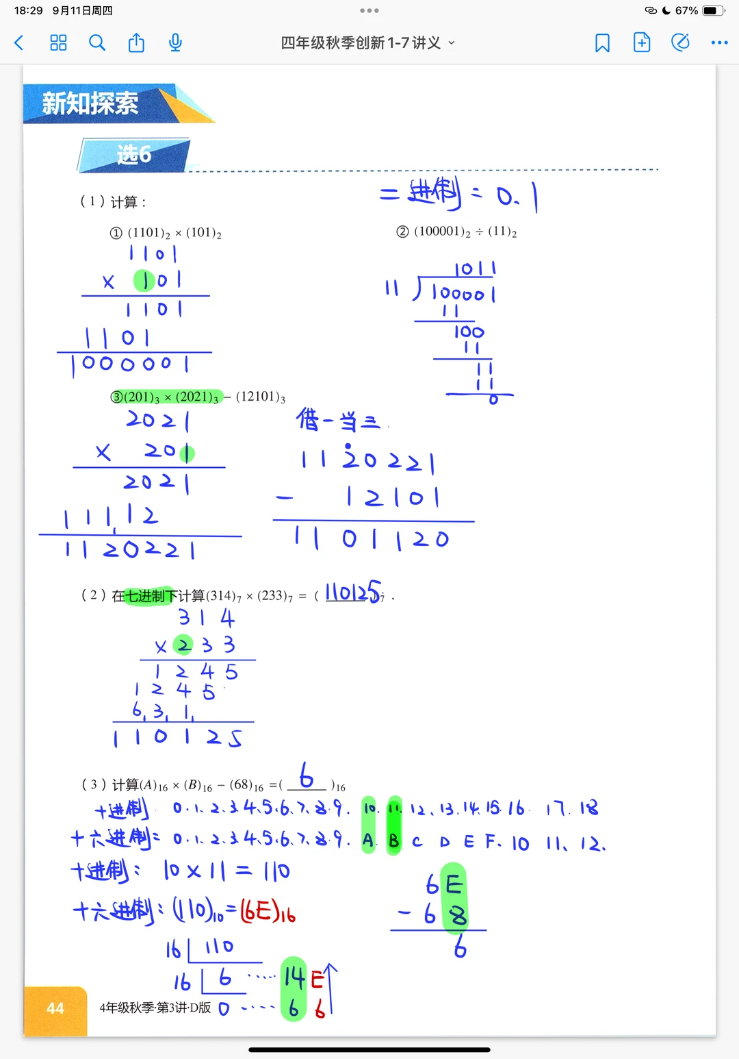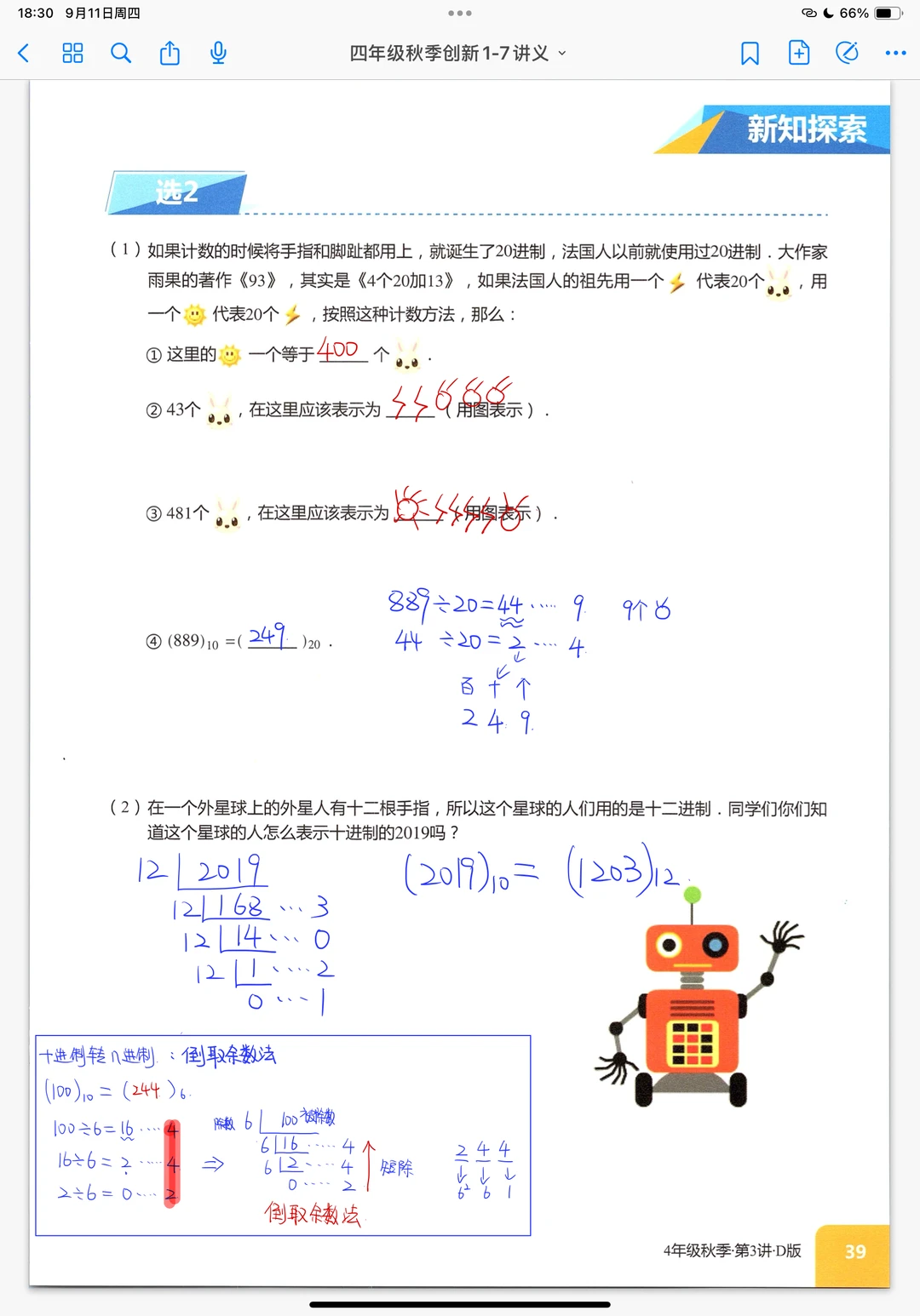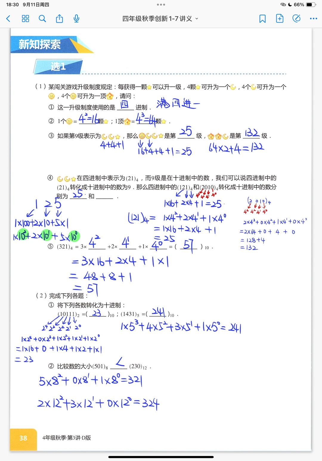 进位制转换,四年级秋季创新班奥数课堂笔记