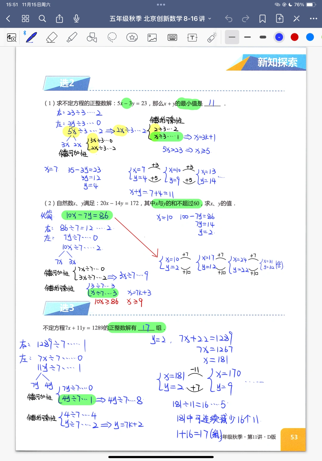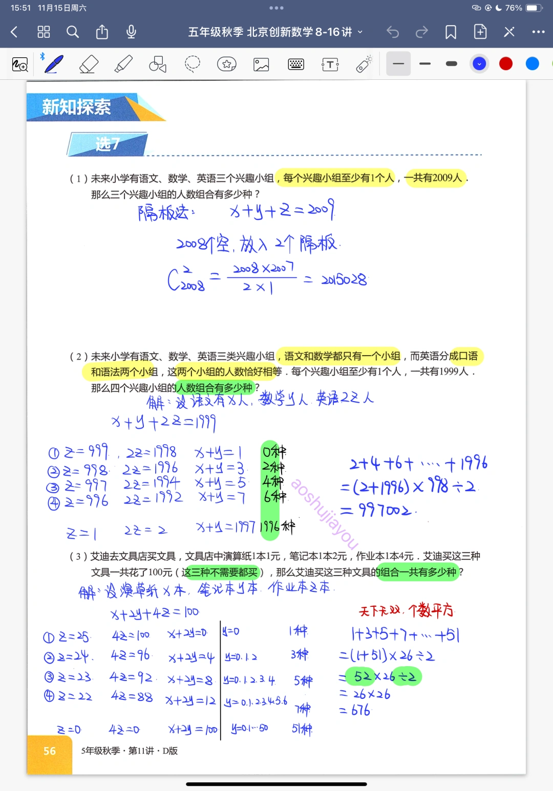 风筝模型 五年级秋季创新班奥数课堂笔记