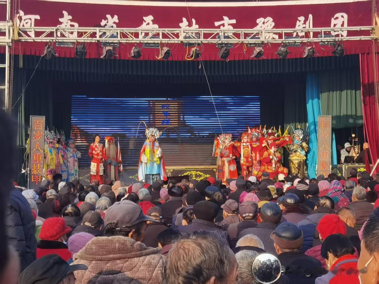 村里传统的大会到了,这大戏台一搭起来,整个庄里的气氛就热乎起来了!河南省开封市豫剧团的演员们扮上精致的行头,亮开嗓子唱起来,那腔调听得人心里敞亮。台下黑压压的全是乡亲,大爷大妈们搬着小马扎早早占座,有的眯着眼跟着哼,有的凑着耳边聊剧情,小孩儿挤在人群缝里扒着看台上的花脸和凤冠。锣鼓点子一响,演员们的一招一式都有板有眼,传统豫剧的韵味儿飘满了整个场子。这热热闹闹的大戏,不光是看个乐呵,更是咱农村里最接地气的乡情啊。
