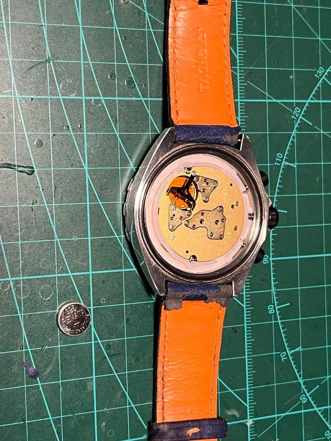 自己动手换个电池…感觉也没啥难度,顺便表带也换新…豪雅这个gulf配色其实没啥特别,反而这个模拟柏油路面的表带挺特别..但就是不耐磨…带一带就磨损严重