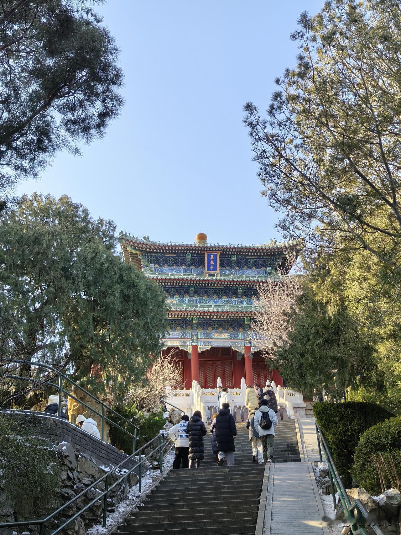 冬日的景山公园,雪后美如画卷。12月12日,北京迎来初雪,景山公园瞬间成为热门打卡地。游客们排着长龙般的队伍入园,径直朝着“故宫绝佳观景位”万春亭奔去。 沿着山路绕行,能看到明崇祯殉国地,历史的厚重感顿时扑面而来。继续向前,登上万春亭,站在北京城中轴线的正中央,故宫全貌一览无余。红墙与白雪相互映衬,美轮美奂。向北眺望鼓楼及更远处,北京的景致尽收眼底,极为壮观。 尽管雪天地滑,步道上还结了冰,但游客们的热情丝毫不减。景区贴心地铺设了防滑地毯,工作人员也不停地提醒游客注意安全。即便从入园到万春亭需要花费半小时,大家依旧乐在其中,这真是一次令人难忘的冬日体验。
