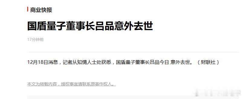 国盾量子董事长吕品今日意外去世国盾量子吕品