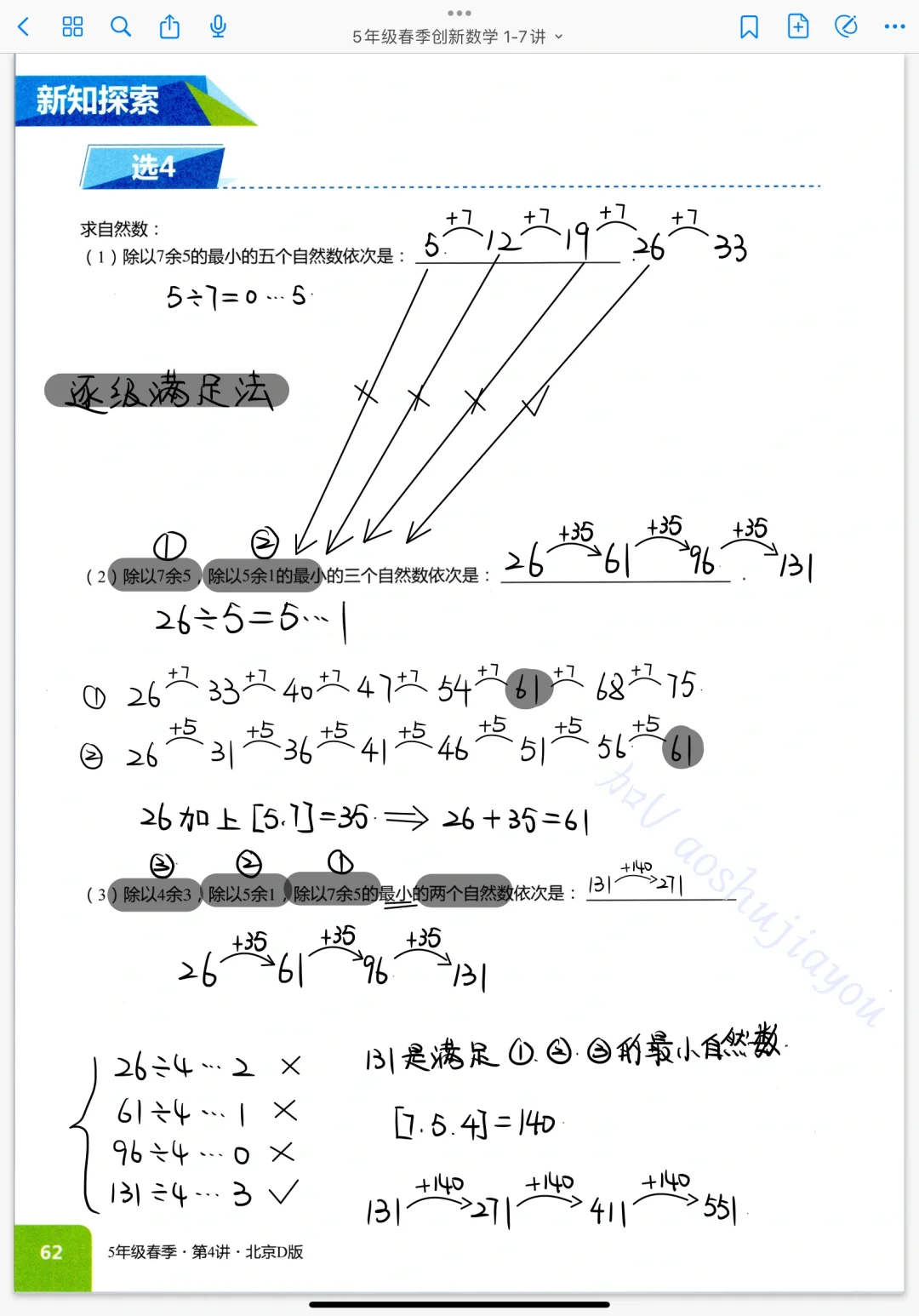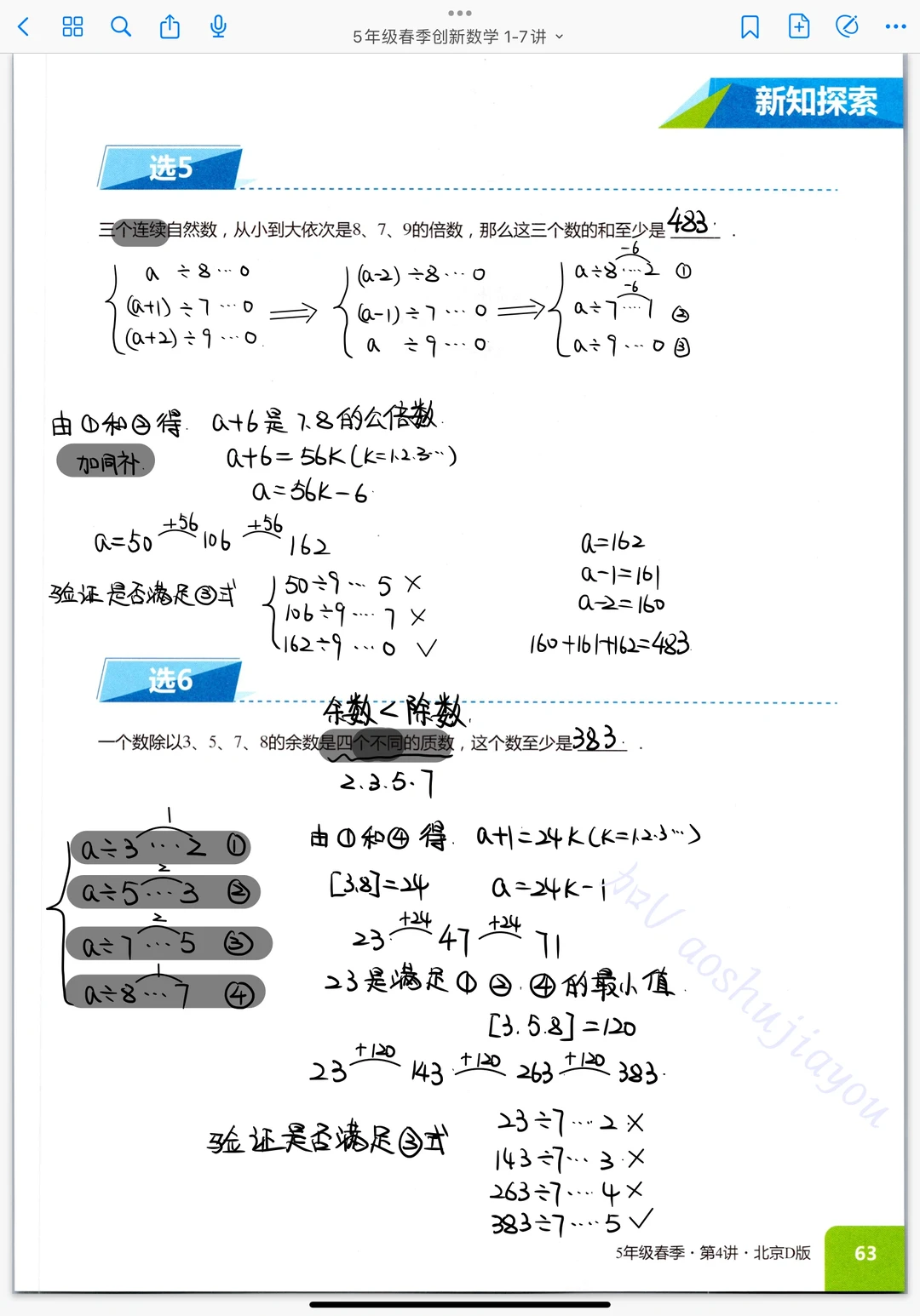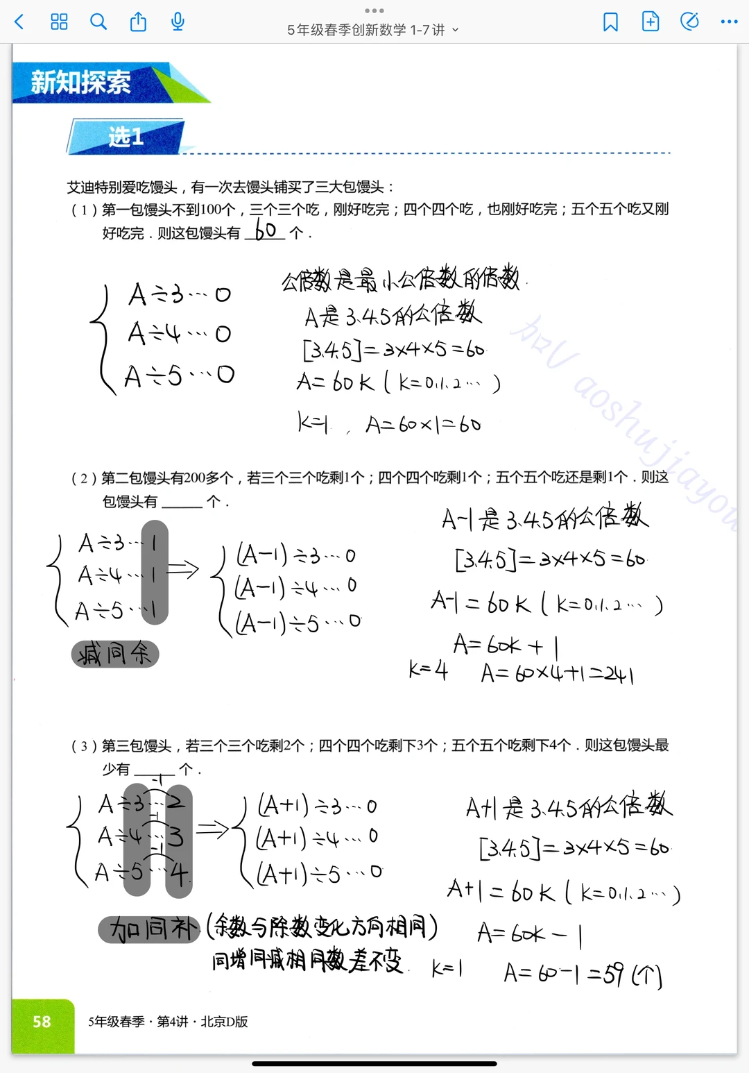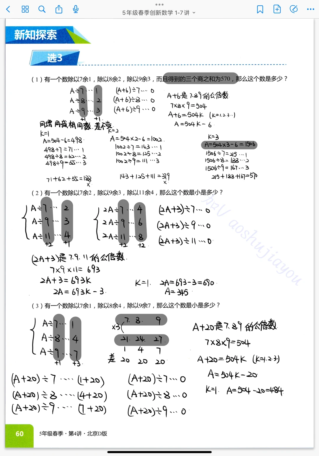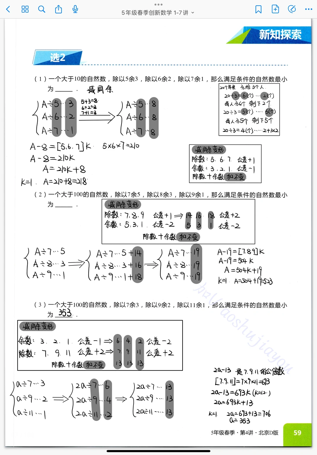 《剩余问题》五年级奥数创新班课堂笔记数论