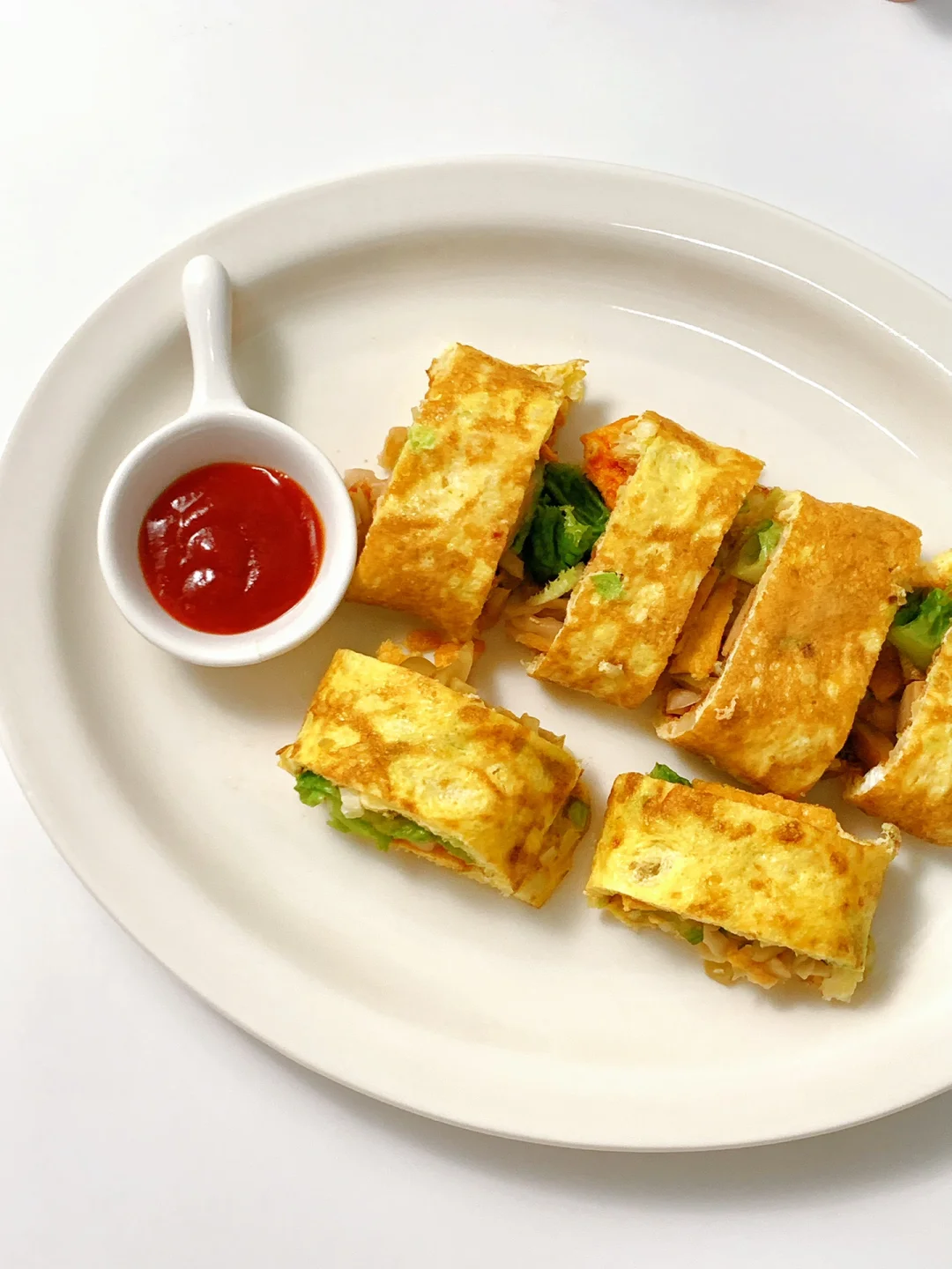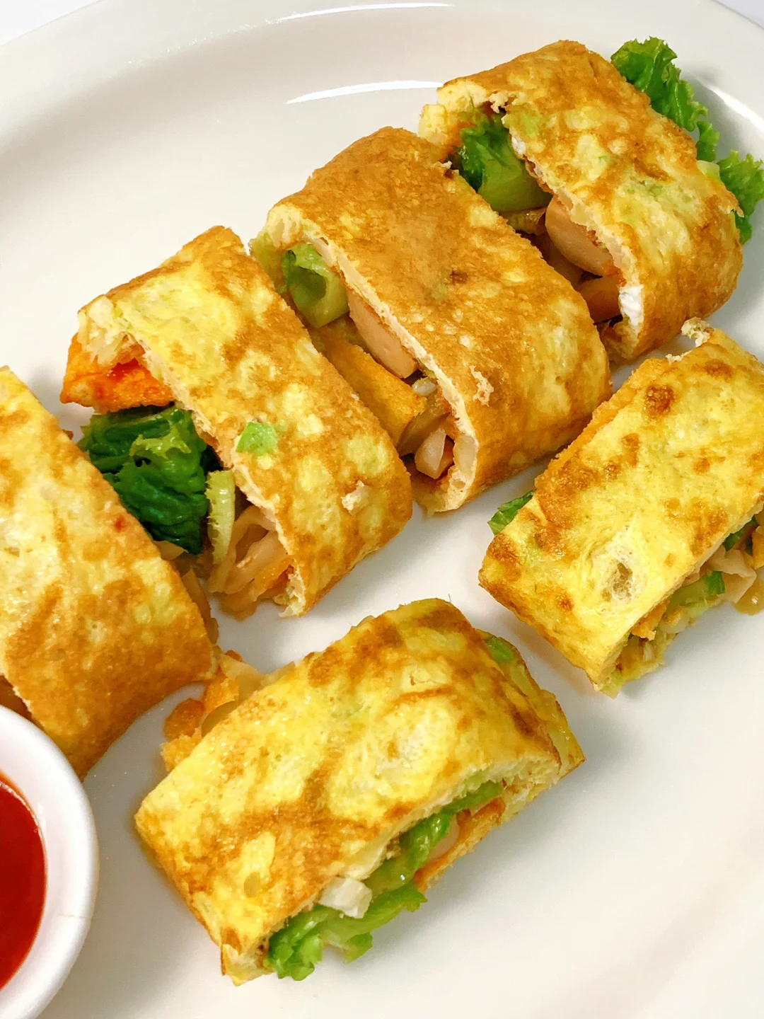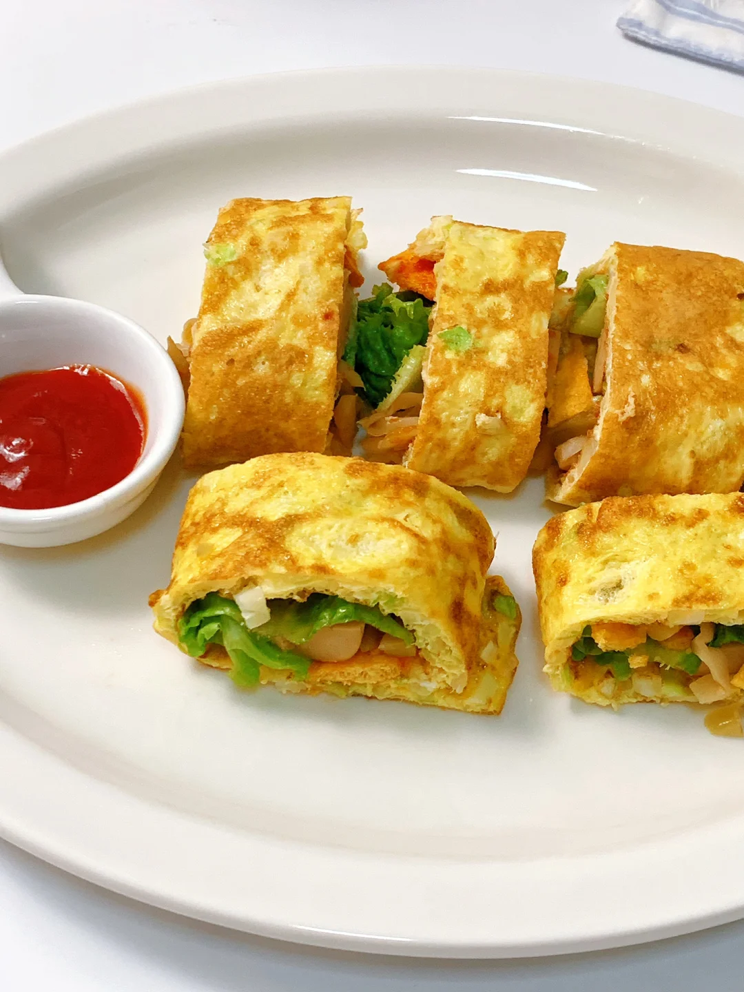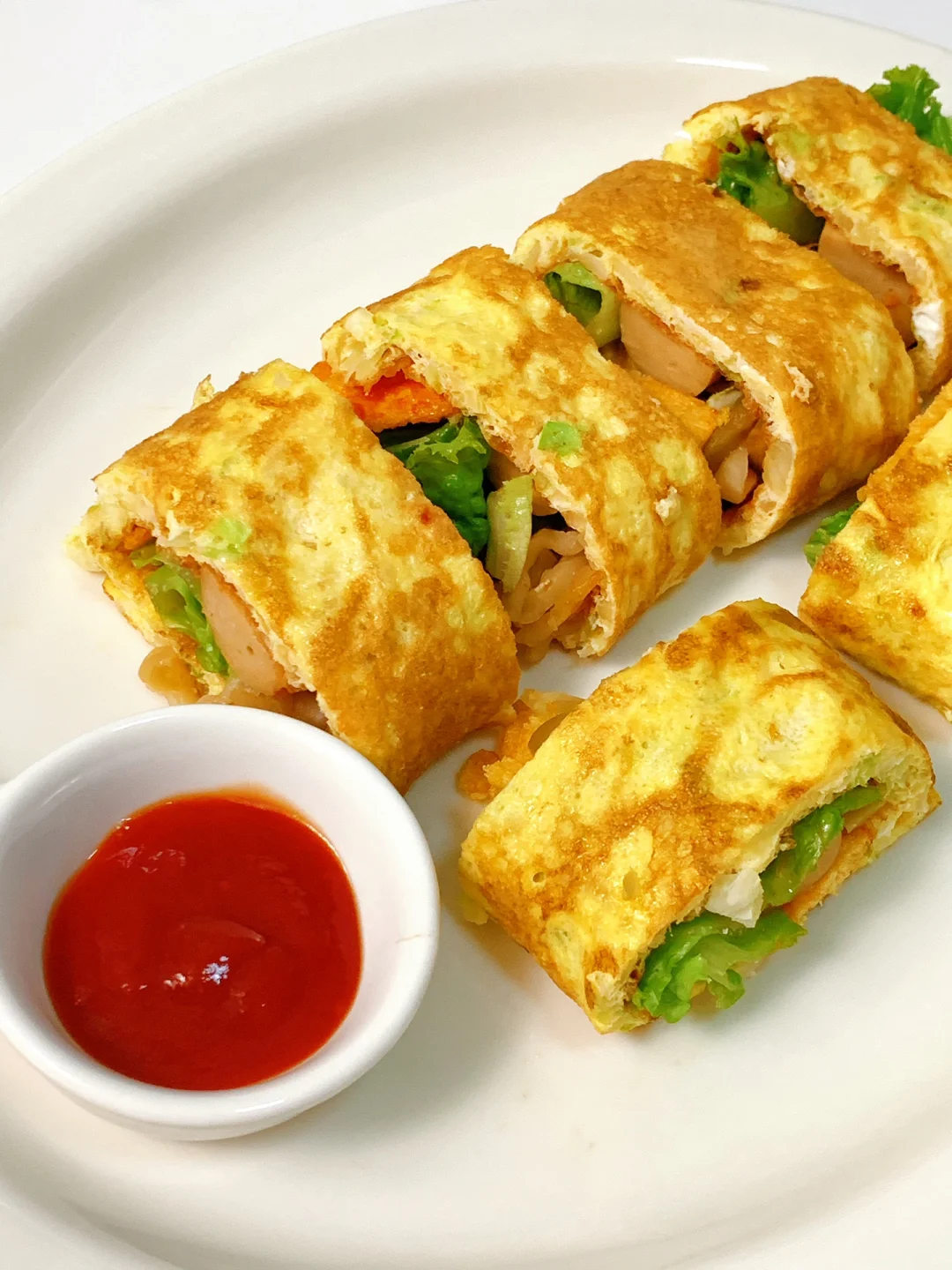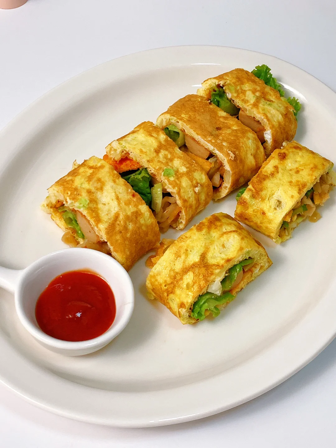 食材:包菜,鸡蛋,榨菜丝,火腿肠,生菜,锅巴(3个鸡蛋液➕70g包菜碎,可以煎两个饼)