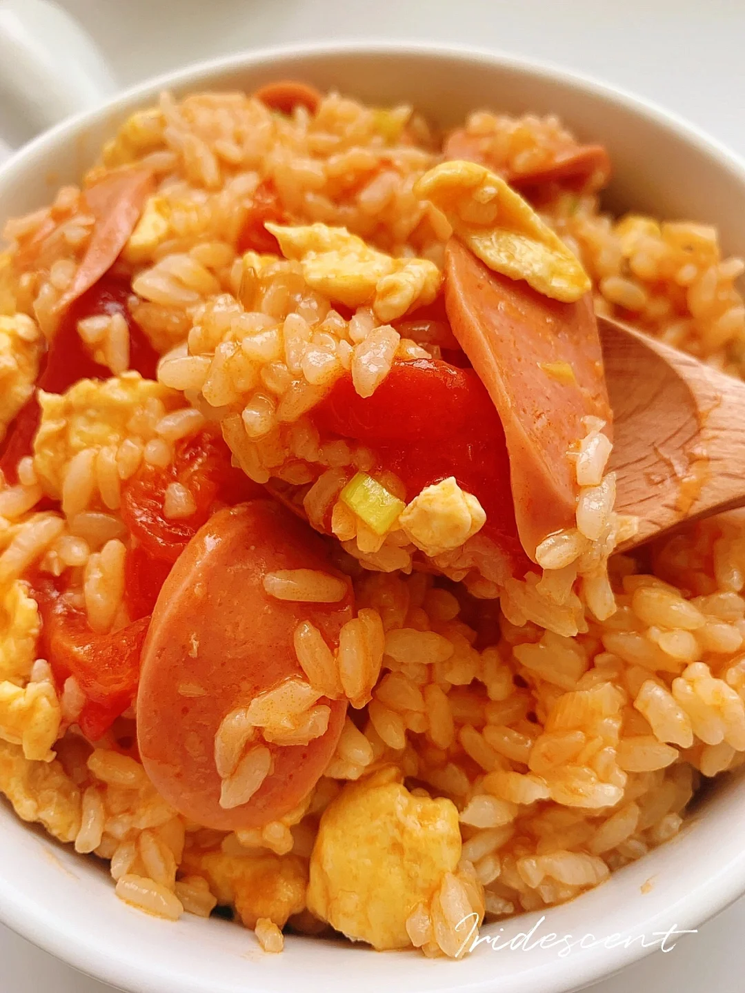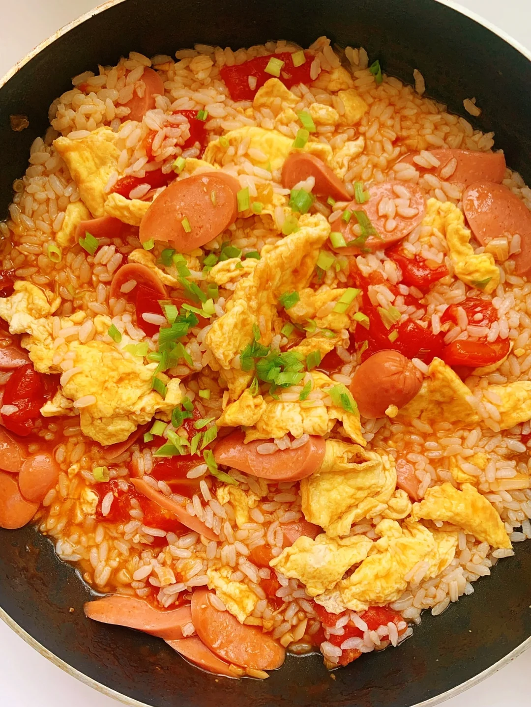 4️⃣加一碗米饭翻炒均匀,收汁出锅撒葱花