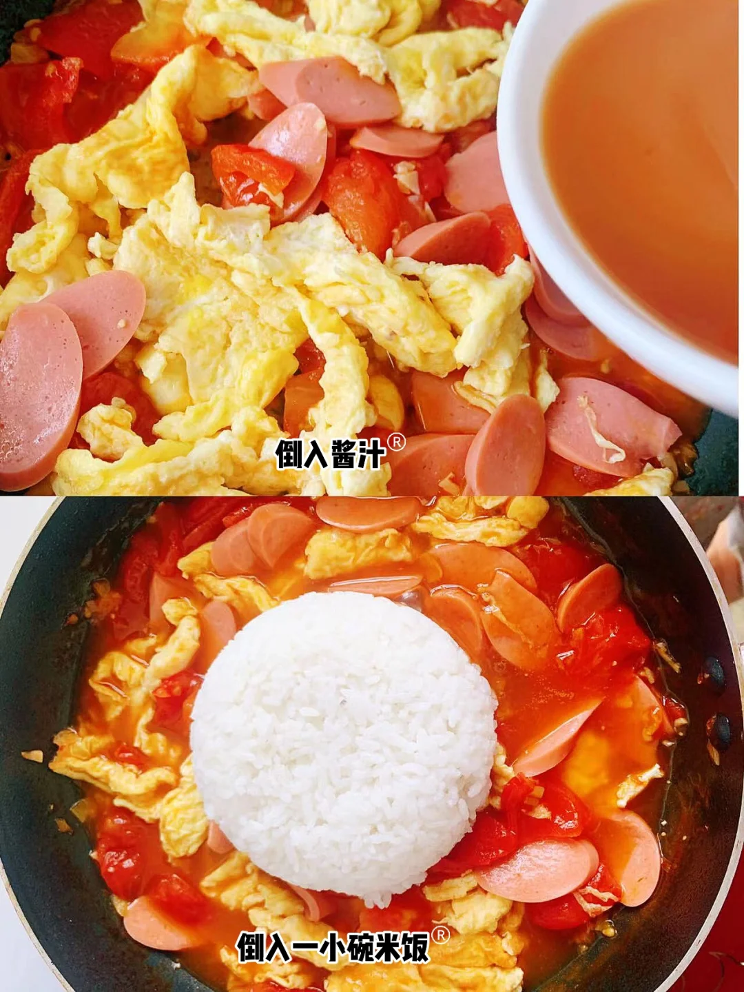 咱就是说,谁没有吃过这个,谁还能拒绝这个呢,话说今天的番茄有点少[笑哭R][笑哭R][笑哭R],我这是2️⃣个鸡蛋,1️⃣个番茄🍅,1️⃣根火腿,1️⃣小碗米饭🍚的量,如果想要汤汁更浓郁,加个番茄🍅,今天是碳水日呀,😘今天也是快乐的一天呢❗❗❗
