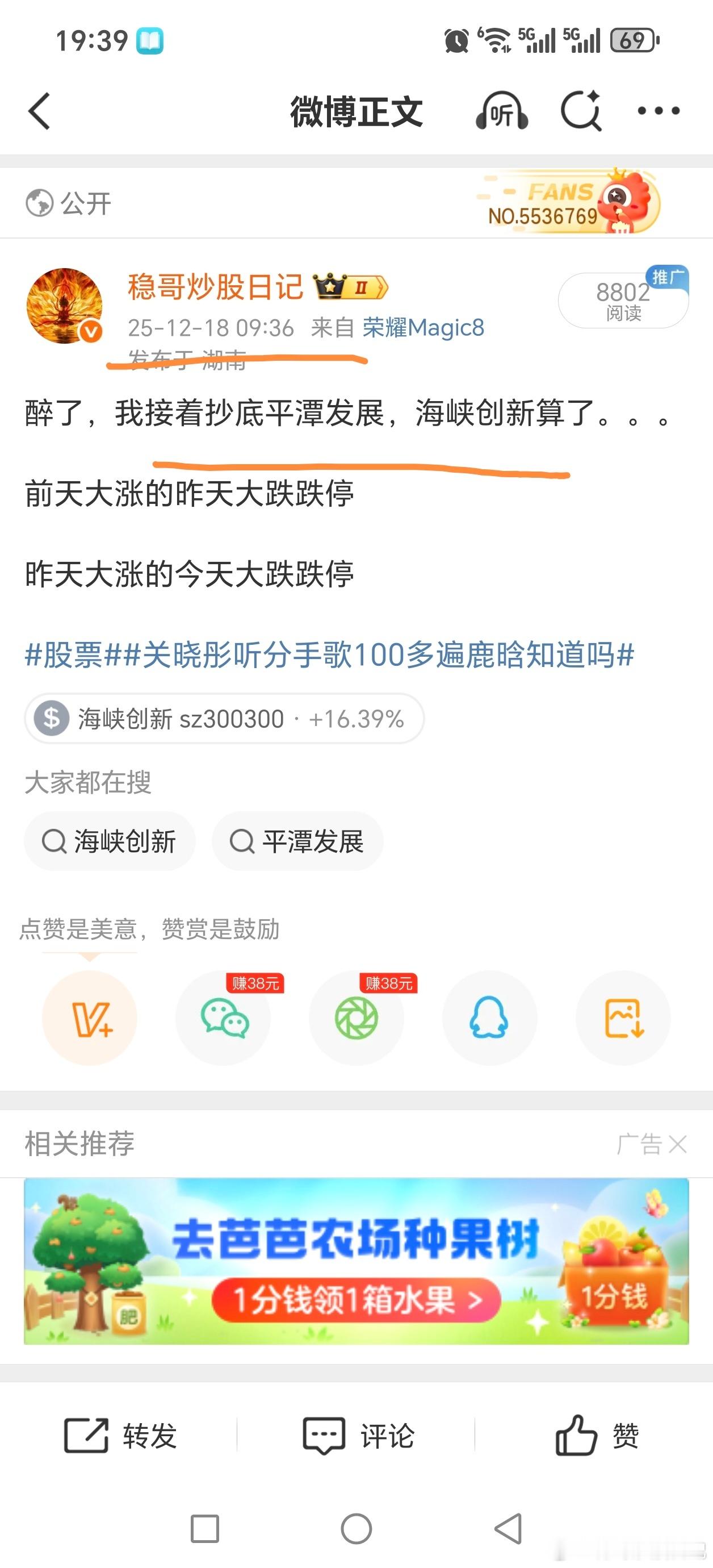 早上再次提低吸平潭发展,海峡创新,一天20点!!!股票在质不在量!!牛逼的反复做,比频繁换股效果好多了!!!我在群里发了红包,为大家送上吉祥好兆头,大吉大利,恭喜发财!快来加入粉丝群,领红包!红包雨群股票关晓彤听分手歌100多遍鹿晗知道吗