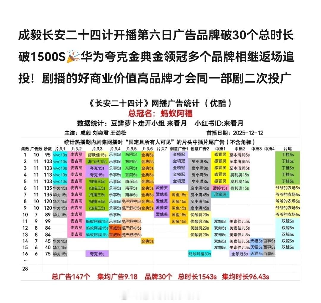 成毅长安二十四计最新广告品牌数破30总时长破1500S!华为夸克金典金领冠多个品牌二次投广!南孚发文感谢长安二十四计粉丝!剧播的好商业价值高实打实的爆🔥