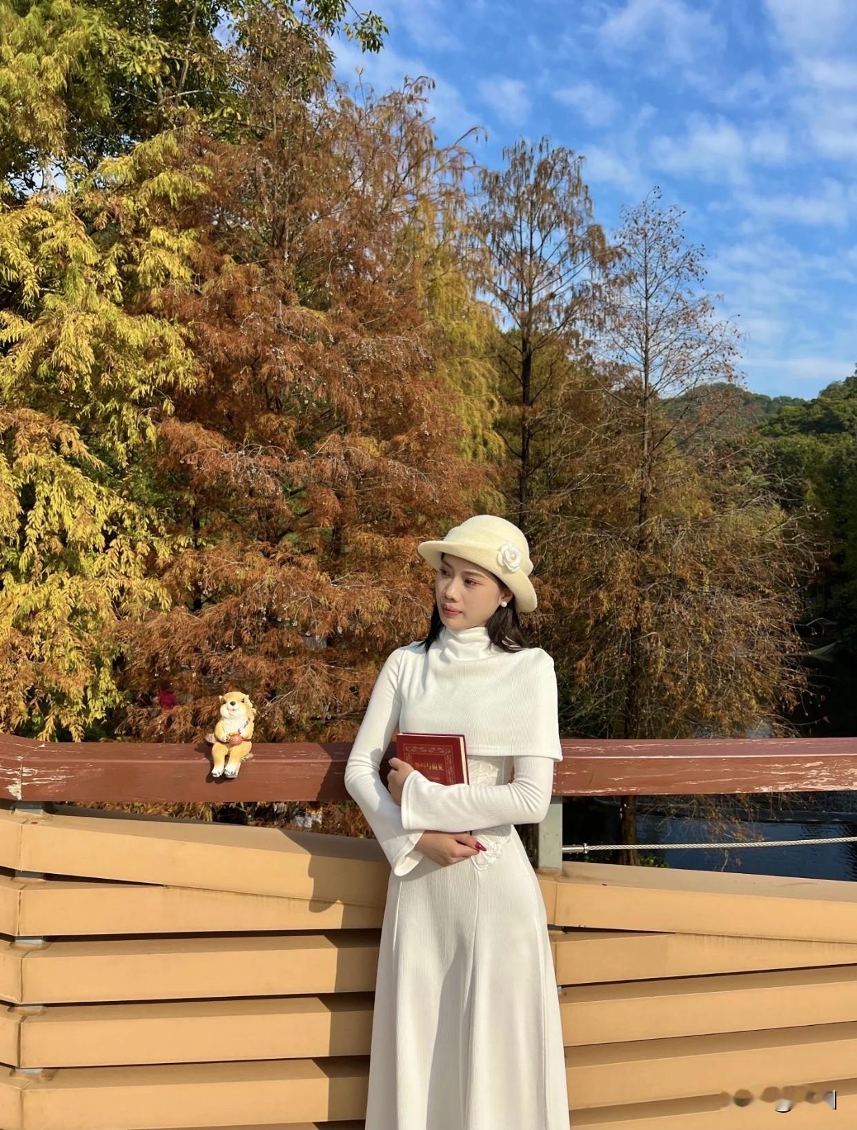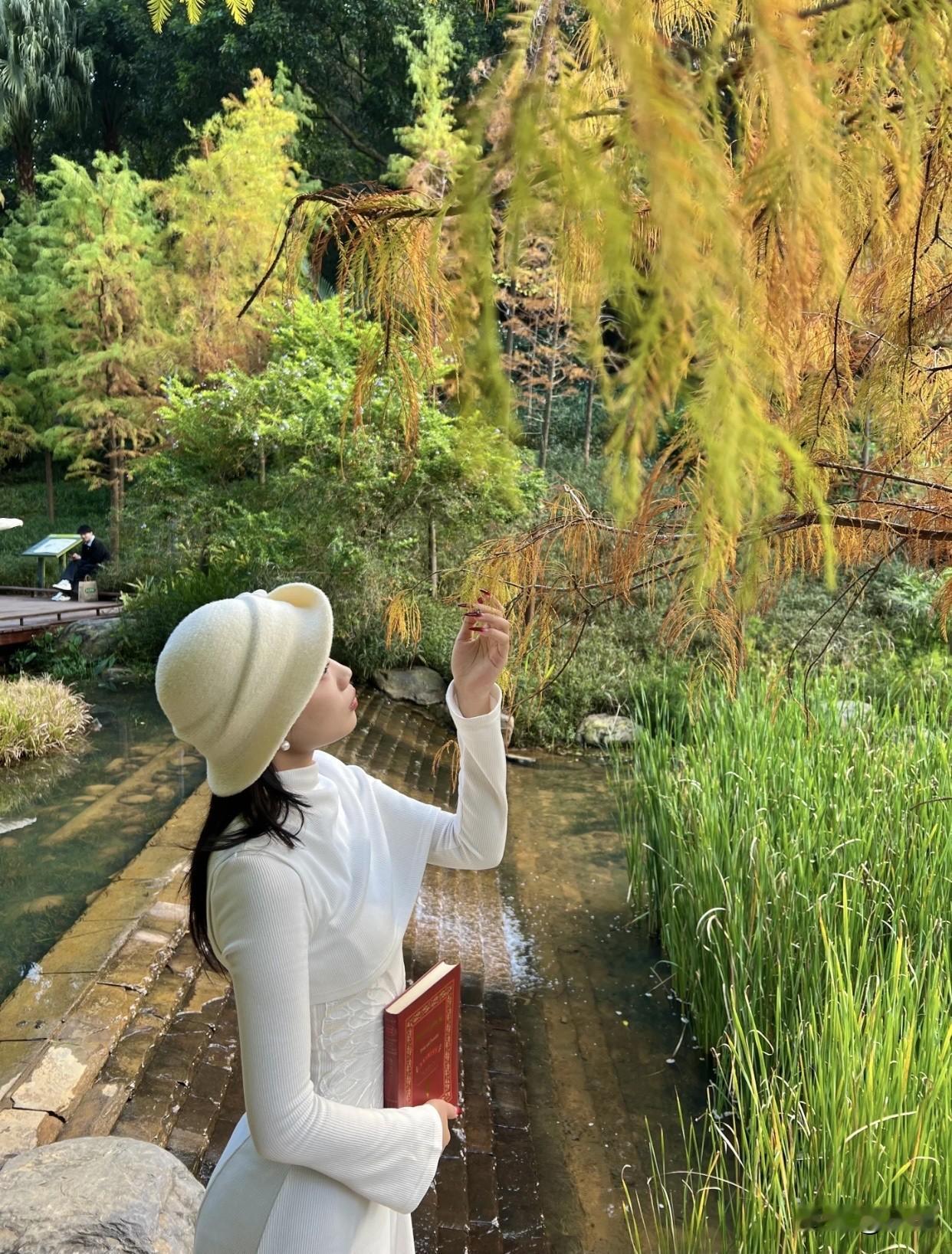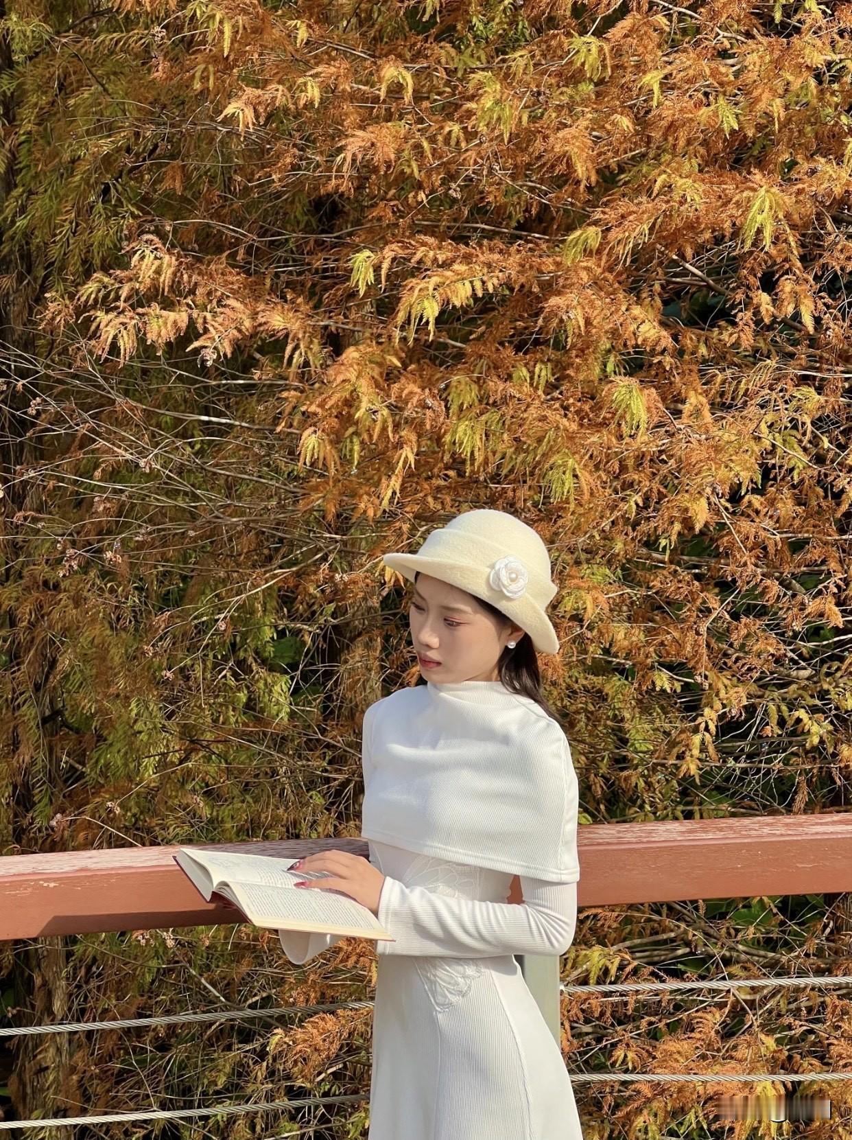 手里有道具,拍照姿势不用愁。想面对镜头,就微微低头露出笑容,自然可爱;不想面对镜头,“左顾右盼”展现动态美。 秋日街边也是出片好地方。可以从镜头外缓缓走进,让搭子抓拍迈步瞬间;人多就坐在围栏上让搭子仰拍;还能虚化背景,倾斜身体,或者侧身站着拍,拍出慵懒惬意、充满生活感的美照。