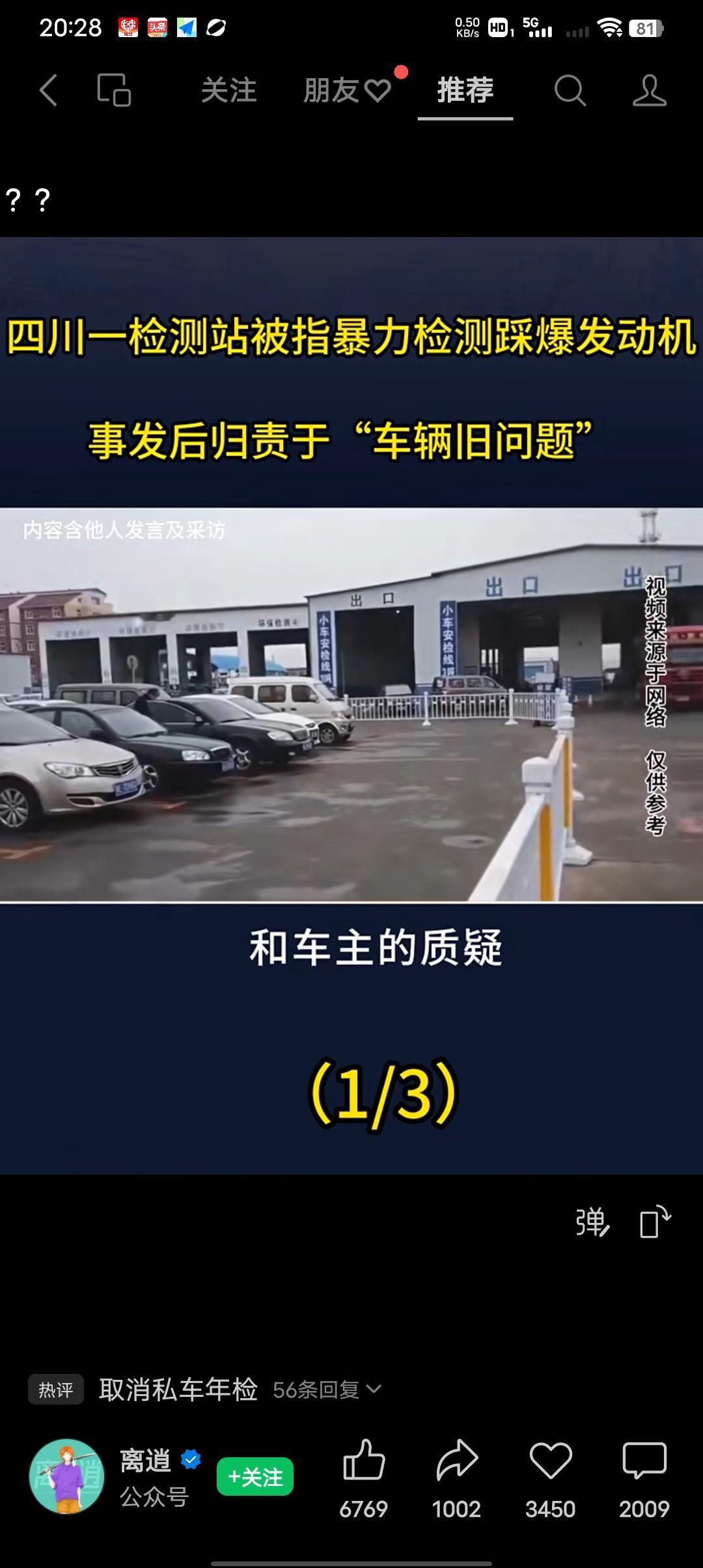 车辆年检竟成了报废现场,你能相信吗? 一脚油门踩下去年检竟成了报废现场,12月16日据中安在线报道,四川一位车主将爱车送去年检,却在检测线上遭遇粗暴操作,导致发动机当场严重损坏。 而更令人无法忍受的事,检测站却说是车辆的本身问题,让车主自行修理。 车主:在12月16日我把车送去了年检,然而在检测线上,本该严谨的年检操作却变了味儿,视频画面显示,检测人员在操作过程中动作异常粗鲁,伴随着一阵不正常的高转速轰鸣,车辆的发动机发生了严重损坏。 更令人气愤的是检测站事后的态度,面对确凿的损坏事实和车主的质疑,检测站没有第一时间出来解决车辆损坏问题,而是轻飘飘的一句车辆本来存在旧问题,试图把责任完全推给车主,最后更是把损坏车开到一边采取了不管不问的冷处理方式。 我觉得既然车载年检检测站损坏的,检测站就有维修损坏车辆的义务。有人说,希望能取消私家车年检,我觉得不可能取消,因为合理的年检对私家车有好处,会对私家车起到能及时消除安全隐患的督促作用,只要是有有经验的操作人员正规操作就行。