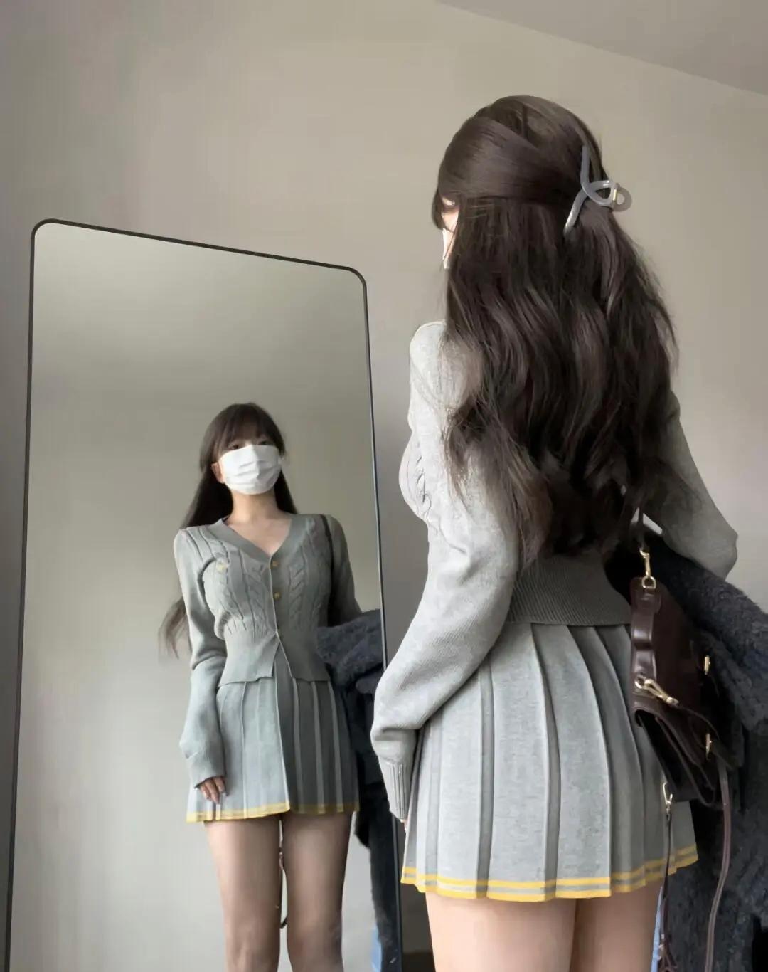 绿毛衣+白裤子,简约又舒适,戴上口罩出门去!😊👗👖👟