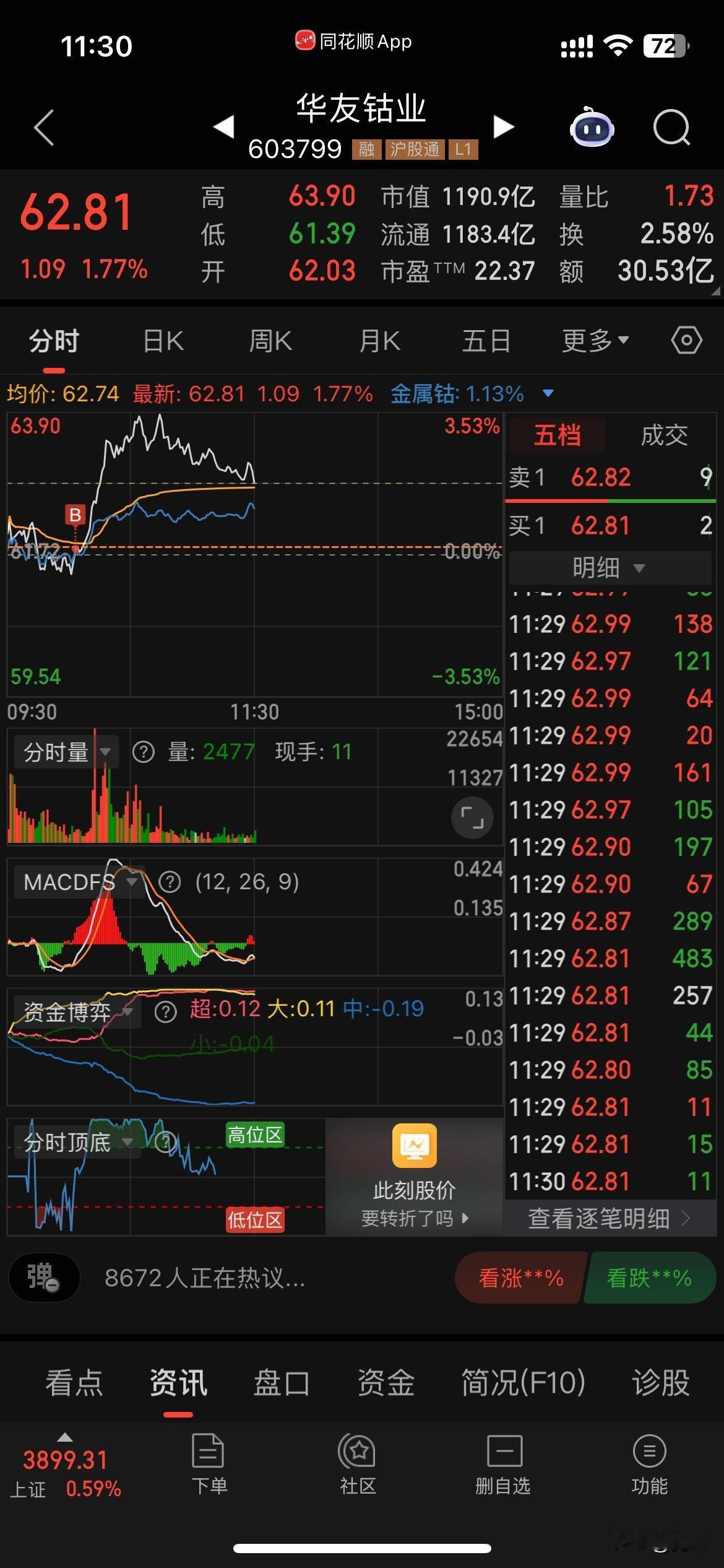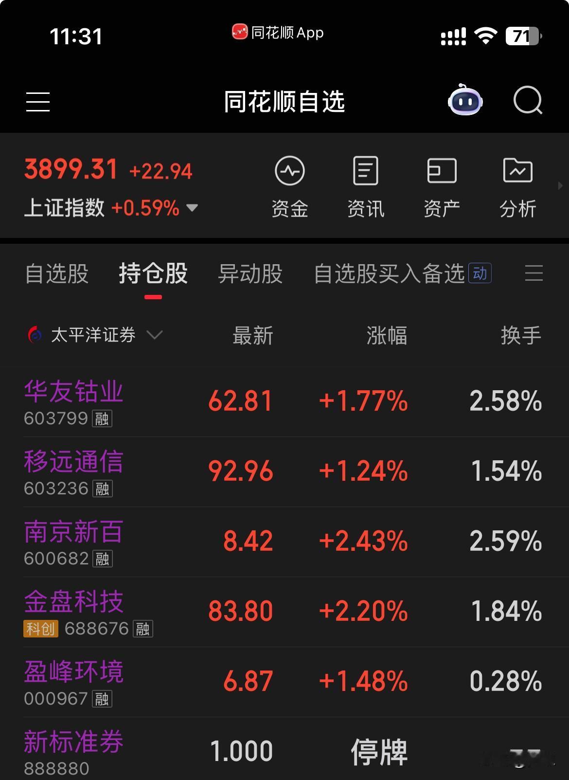 今天大盘情绪不错,一路上冲。临近中午,日本加息如期而至。大盘反而来了一波加速上涨。这是不是就是利空落地利好股市。上午我把盈峰止盈了1/3。买入了华友和移远(盯了几天)。移远我是很看好,不过今天买在了最高点😬。上午红盘1千3百多。基本收复昨天失地。看下午能不能顶得住。