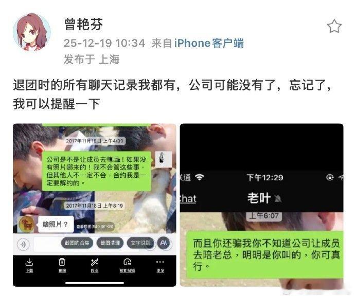 曾艳芬放出和丝芭老板的聊天记录,说公司让成员去陪老总