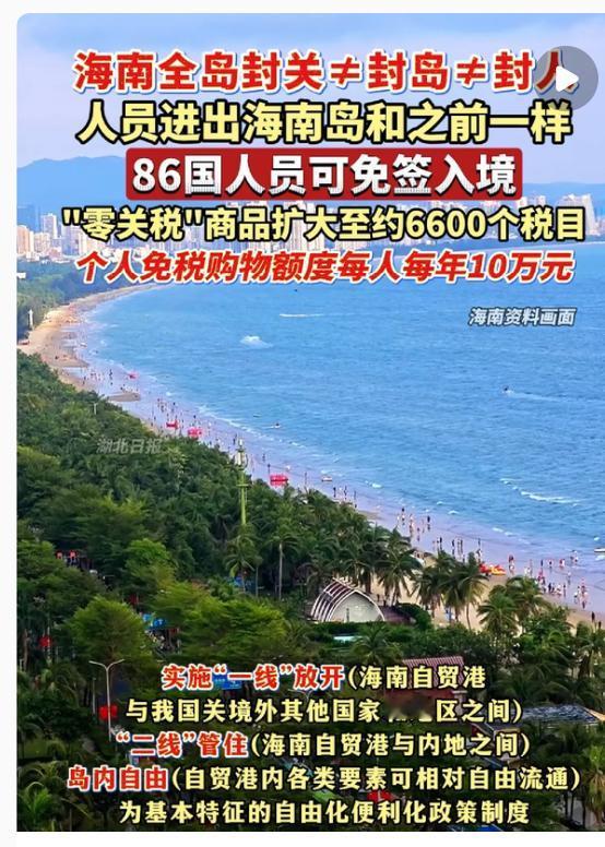 海南封关最近挺火的,好多人好奇这到底和咱普通人有啥关系 以前买进口奶粉化妆品得找代购,价格贵还怕假货,现在海南封关6600多种商品零关税,以后直接去海南买或者线上渠道,价格能便宜不少,关键是正规渠道更放心。不止买东西,生产企业进口设备原材料也零关税,成本降了,造出来的东西可能跟着降价,咱们平时用的家电日用品,说不定过段时间就更便宜了。 你说这海南封关,是不是真能让咱们买东西更省心省钱了?