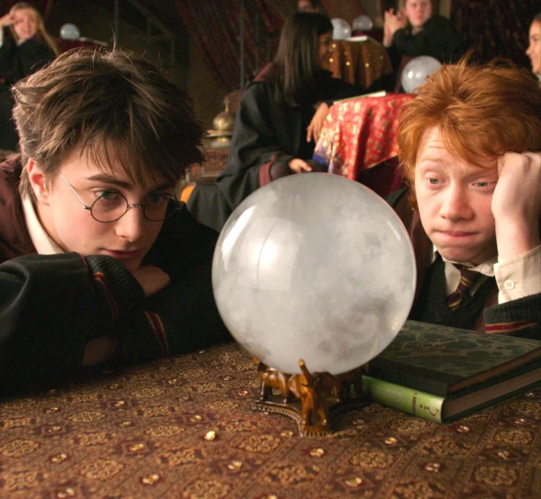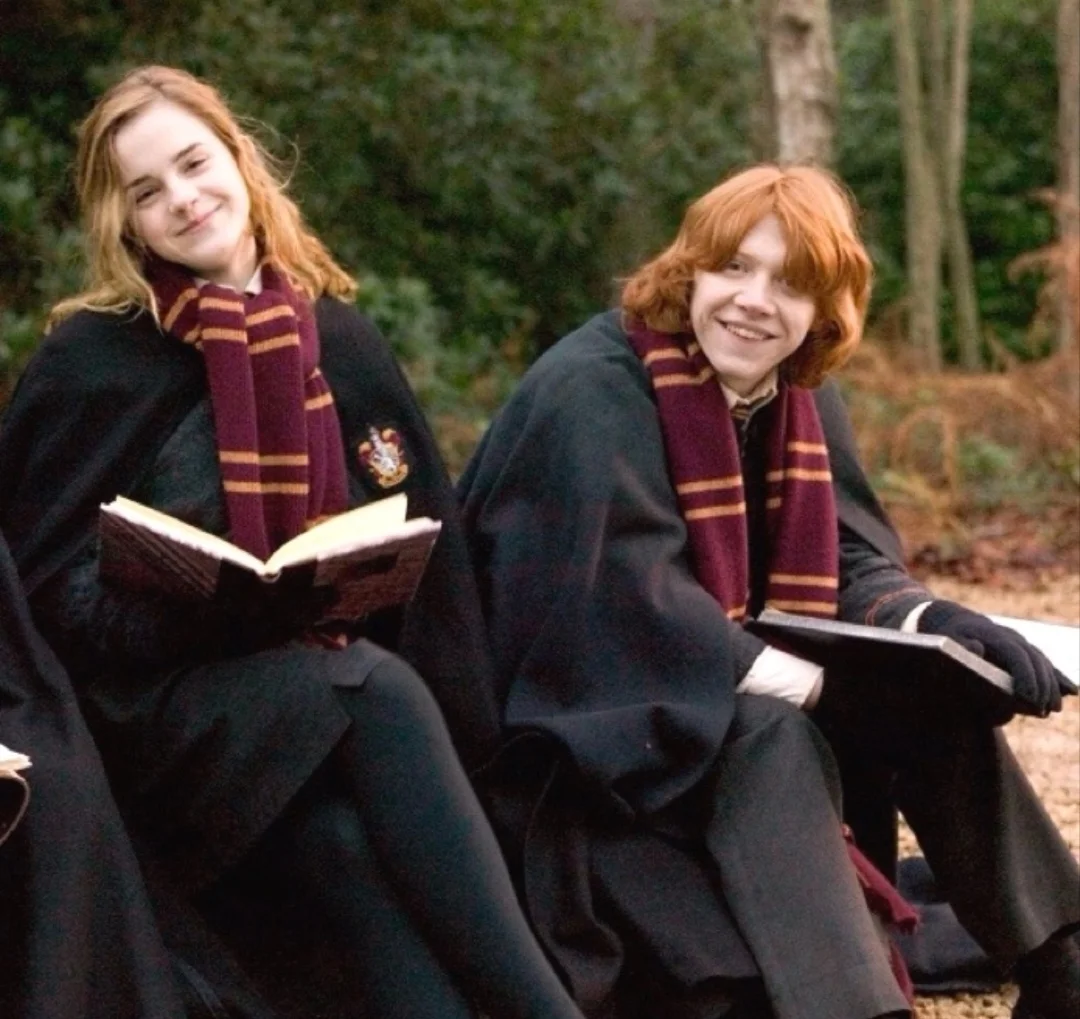 赫敏首先是问罗恩“你怎么看?”这使哈利想起韦斯莱夫人向自己丈夫求助的情形(姨母笑