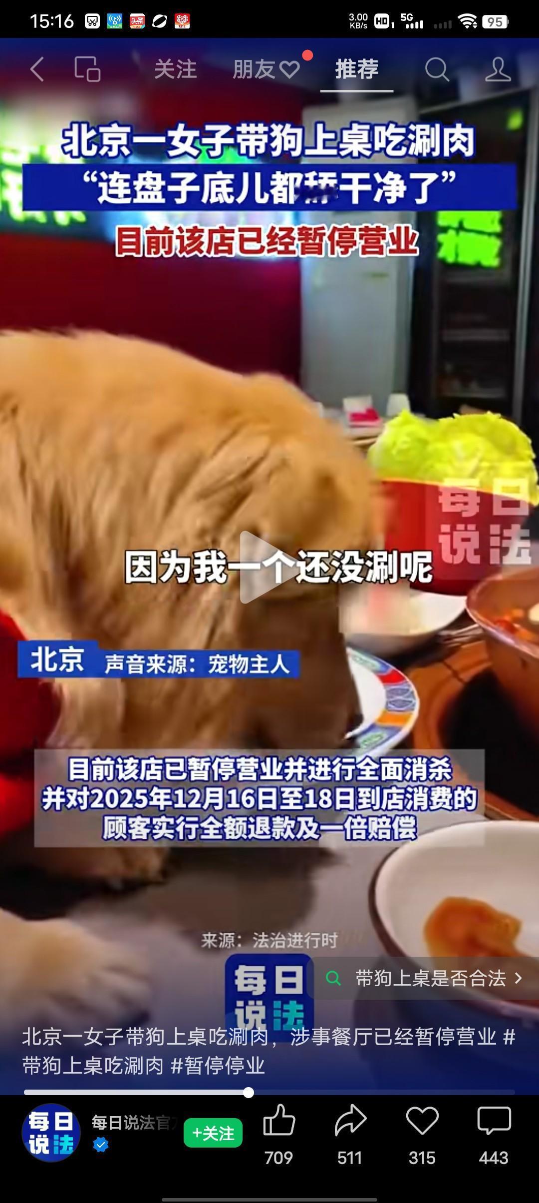 原来不让带宠物狗一同吃饭是有原因的! 刚刷到北京一女子,带狗上桌吃涮肉,狗主人并没有阻止狗,视频中看到狗趴到桌子上在吃盘子里的肉,还把盘子舔的特别的干净。 行拍摄者狗主人:“坦白的说,我都不知道这个羊肉是什么味道,因为我一块都还没有开始涮,它一盘子就吃光了,宝贝真棒,连盘子底都舔干净了” 这个视频是狗主人拍的,视频中狗主人对狗狗的宠溺满满的自豪感,我想说如果这个视频不发出来,是不是就没人知道狗上桌吃肉还舔了盘子? 有消息说该店已经停业进行全面消杀,并对12月16日至18日到店消费的顾客实行全额退款及一倍补偿。 那么问题来了,该店的损失谁来买单,该女子能不能赔偿该店的损失呢?我觉得该店的停业全面消杀,是由女子带狗上桌吃肉而造成的,所以说女子赔偿该店的损失是无可厚非的。
