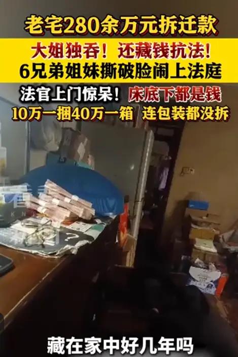 上海阿姨独吞280万元拆迁款,六兄妹如何破解亲情与利益纠葛? 上海虹口区发生一起家庭纠纷案件,长女郑阿姨独占母亲老宅拆迁款280余万元,引发兄弟姐妹不满。郑阿姨以其户籍所在地为由私自领取款项,并拒绝返还原款,甚至将钱藏匿家中,导致家庭关系紧张。母亲去世后,这笔钱成为遗产,六兄妹共同拥有继承权。法院判决郑阿姨需全额返还,但其拒不履行。执行过程中,法官在郑阿姨床底和牛奶盒中发现了大量现金,总计240余万元。最终,在法院调解下,双方达成和解协议,郑阿姨支付部分款项,其余兄妹同意减免利息。此事件揭示了家庭内部因金钱产生的复杂矛盾,以及法律在调节亲情关系中的重要作用。