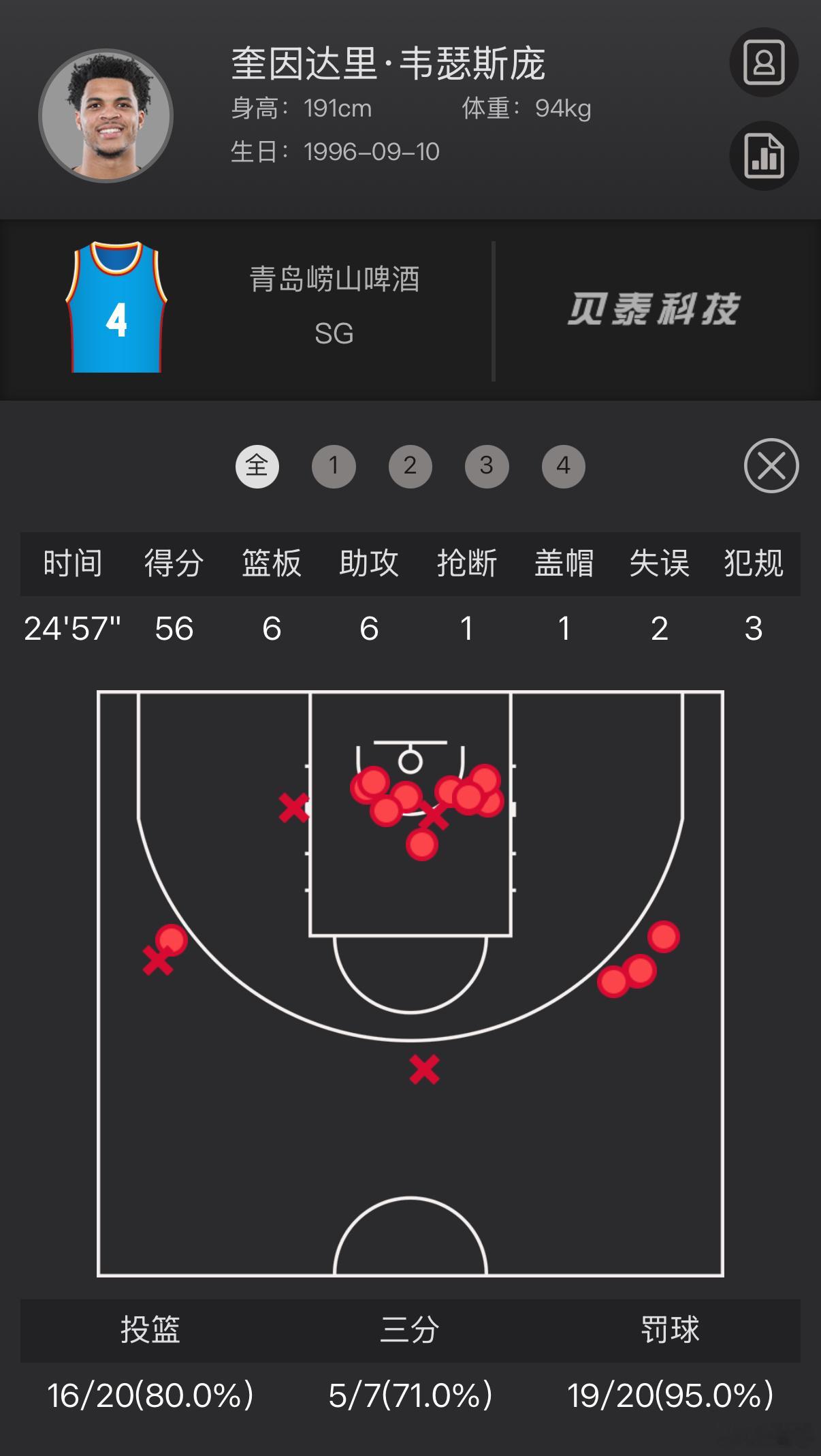 10分钟一节的球抡出56分真有够离谱,在广厦和天津都没太拧明白的威瑟斯庞能在青岛的两个游戏版本里都当好持球大核,这故事足以载入小外援闯荡CBA的轶事榜。