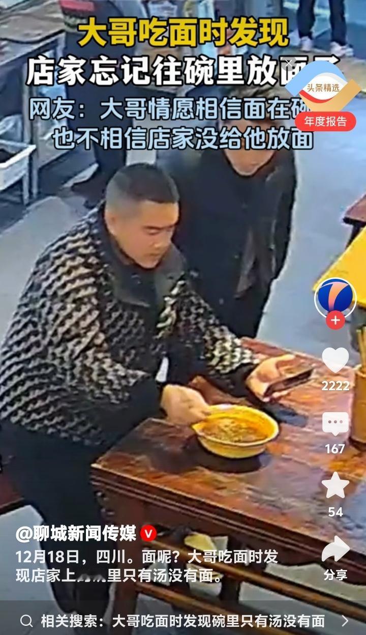 陕西面馆惊现“灵魂出窍”名场面!大哥端汤沉思三分钟,一碗无面之汤照出你我生活里多
