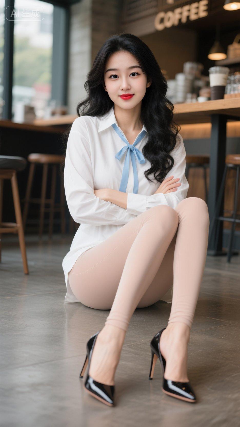 黑色垂坠柔顺长发,蓬松自然,冷白皮,极致的妆容,水润滑嫩,油亮丰盈嘴唇