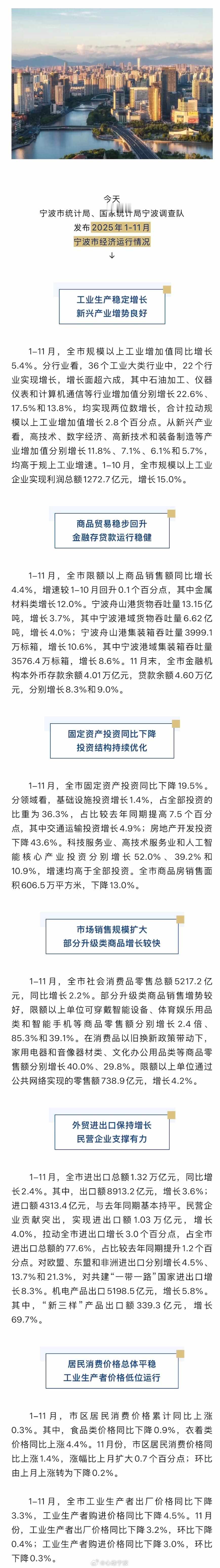 【刚刚宁波1-11月经济运行情况公布 】今天,宁波市统计局、国家统计局宁波调查队发布2025年1-11月宁波市经济运行情况↓(宁波发布)同城热点创作计划 宁波