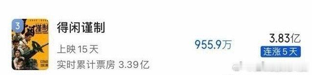 肖战《得闲谨制》票房预测连涨5天,目前实时票房3.39,预测票房上涨到3.83亿了。我之前看过玄学说这部电影的成绩会慢慢发力,细水长流的增长,属于后劲足的类型的毕竟现在口碑已经立住,票房又早已回本了。得闲谨制