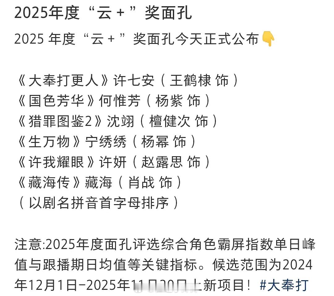 云合认证的2025年爆剧,你们看了哪一部?《大奉打更人》王鹤棣《国色芳华》杨紫《猎罪图鉴2》檀健次《生万物》杨幂《许我耀眼》赵露思《藏海传》肖战