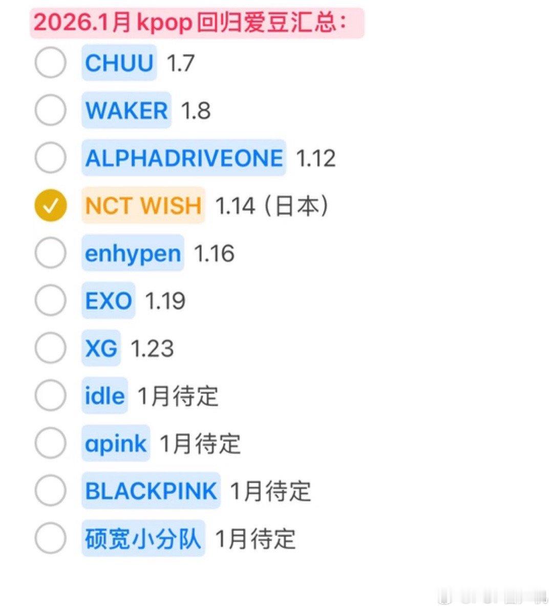 2026年1月回归的团体