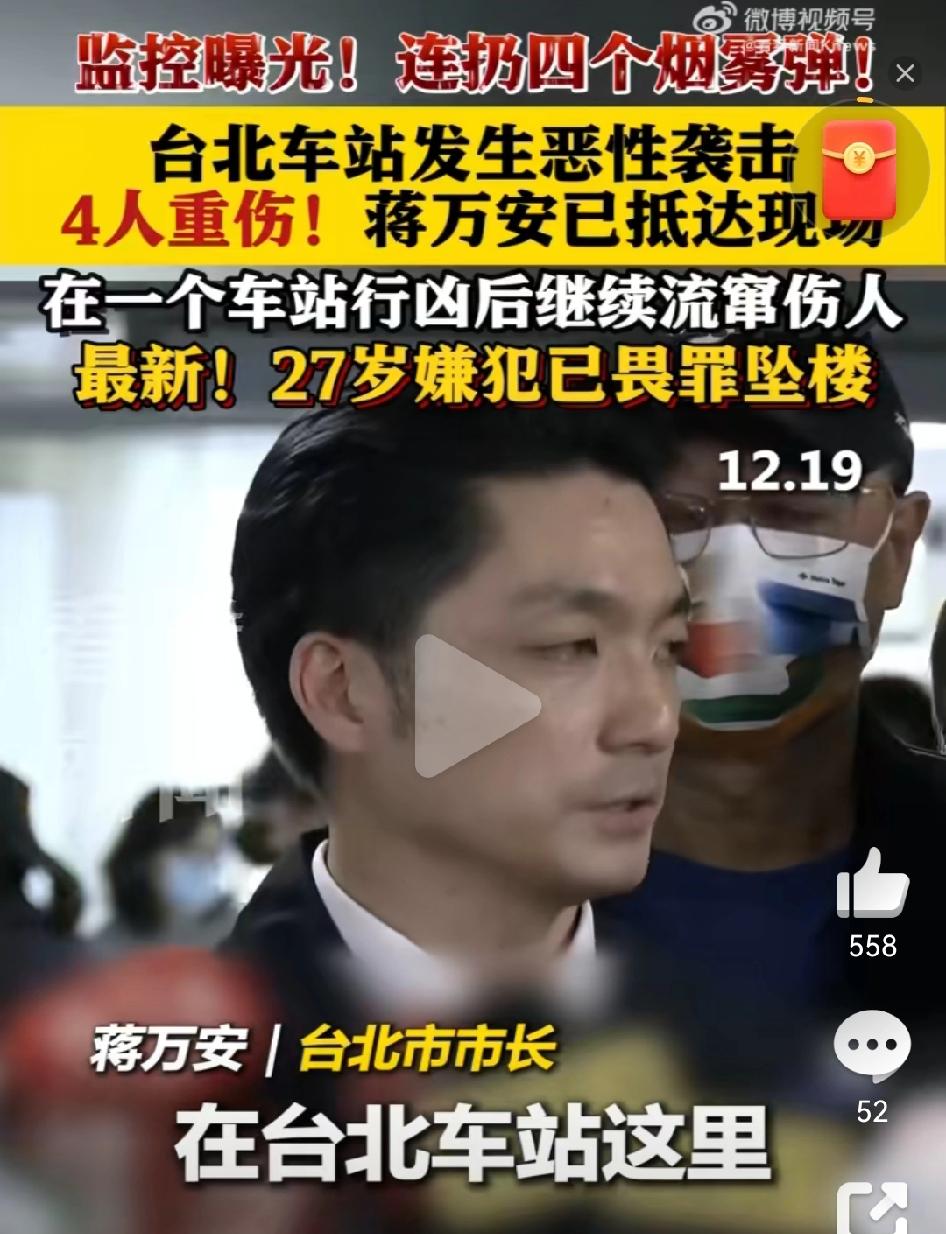 很奇怪,台湾车站没有安检吗?任由他拿着刀和烟雾弹大摇大摆的进入。 如果没有安检,是不是应该反思下?毕竟这关系到人民群众最重要的人身安全。 并且这人5点多就开始作案,等到6点多又换到另外一个地方继续作案,车站没有警察吗?