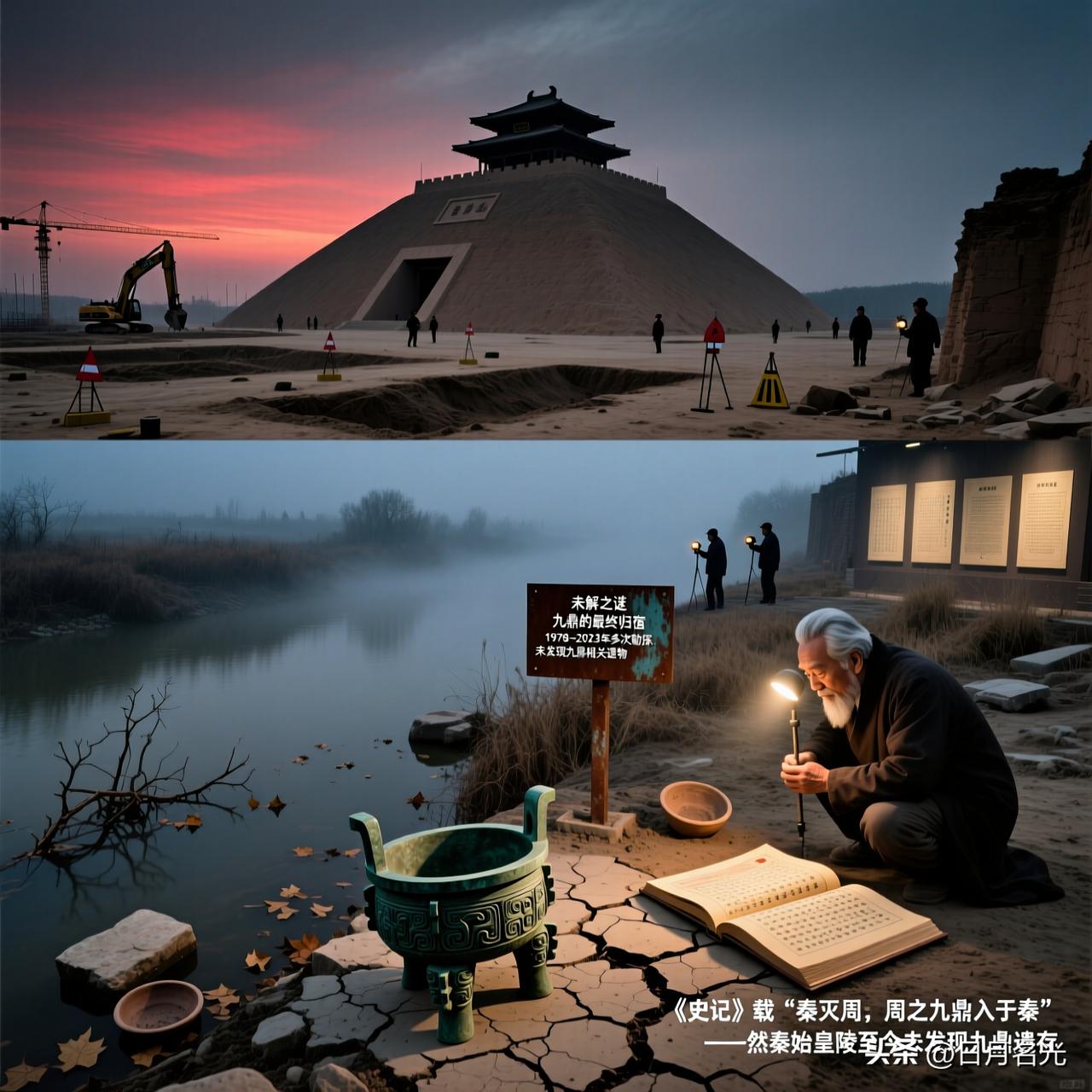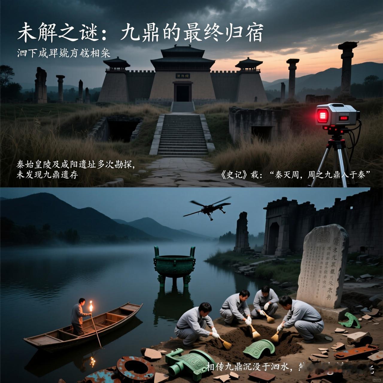 九鼎,作为王权与帝国的终极象征,它是夏、商、周三代传承两千余年的国宝,其最终下落是中华文明史上最大的未解之谜之一。它不仅是王权的象征,更是“天命所归”的信物。关于它的消失,历史记载自相矛盾,考古发现更是扑朔迷离,至今没有一个定论。 🏛️九鼎下落三大主流说法 🔍 秦宫深藏说 此说法认为,九鼎最终被秦始皇作为陪葬品,一同埋入了位于陕西西安的秦始皇陵地宫。 公元前255年,秦昭襄王五十二年,周赧王去世,秦军攻陷东周王城洛阳,夺得九鼎,随后周鼎入秦。 公元前219年,秦始皇东巡至彭城(今徐州),派千人潜入泗水打捞,但终无所获,始皇寻鼎无果。 公元前210年,秦始皇去世,其陵墓地宫深度超80米,目前还未被完全发掘,九鼎可能仍在其内。 💧 泗水沉说 此说法认为,九鼎并非被秦人夺得,而是在秦末战乱中毁于一旦,沉没于泗水之中。 班固《汉书》认为,公元前327年周显王时期九鼎已沉没于泗水。公元前206年,楚汉相争项羽破秦后,将九鼎运至彭城,后战败后沉鼎于泗水。 🔥 销毁重铸说 此说法认为,随着周王室衰微,九鼎已失去其政治价值,被销毁重铸为钱币或武器。公元前255年,周赧王时期周王室财政困难,为避免九鼎落入强权之手而自毁。 九鼎的传承之路 九鼎的传说始于大禹治水成功后,划分天下为九州,各州牧贡铜铸鼎,象征九州,鼎身刻有各地山川物产。这九鼎便成为夏、商、周三代传承的传国之宝,象征着“普天之下,莫非王土”的最高权力。 公元前307年,秦武王举鼎身亡,九鼎的传承戛然而止。九鼎的失踪并非偶然,而是历史断裂与政治博弈共同作用的结果。 司马迁在《史记》中既说“周之九鼎入于秦”,又说“鼎乃沦没”,前后不一,为后世留下巨大解读空间。 🏛️ 九鼎的失踪,是历史留给后世的一个巨大悬念。 ——它象征着权力, 也象征着权力的终结。