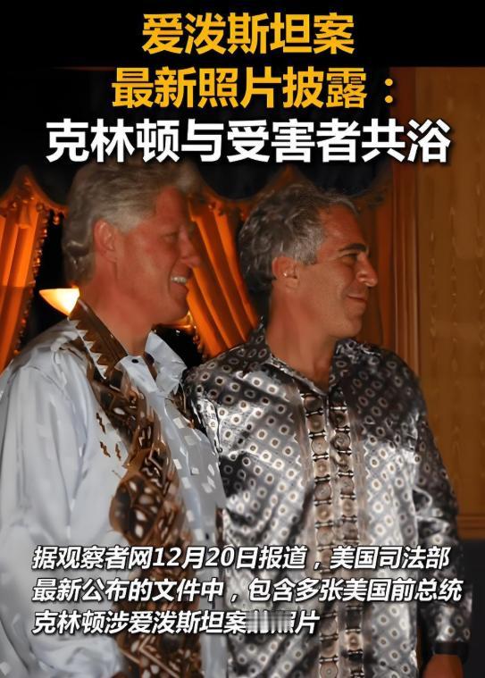 炸裂!克林顿和爱泼斯坦案当中的受害者共同沐浴的图片被曝光! 最近,曾任美国总统的比尔克林顿,深陷爱泼斯坦案, 最近曝出的图片更是相当炸裂: 除了克林顿和爱泼斯坦本人的多张合影被爆曝光后, 他在和相关受害者一起沐浴的照片也被流出, 这张照片当中, 克林顿在浴池当中的侧身照片已经相当的明显, 和他一起在浴池当中的还有曾经的一位女性受害者, 据悉此人正是受到爱泼斯坦的“蛊惑”加上金钱的引诱, 而甘心投入到为克林顿“服务”的行列当中。 克林顿曾经深陷和莱温斯基的暧昧而遭到弹劾, 但最近他的热度再度升高的根本原因, 则是跟爱泼斯坦案有着紧密关联, 根据许多匿名人士的佐证, 克林顿极有可能曾跟随爱泼斯坦登上了“萝莉岛”, 更是“萝莉岛”的常客之一。
