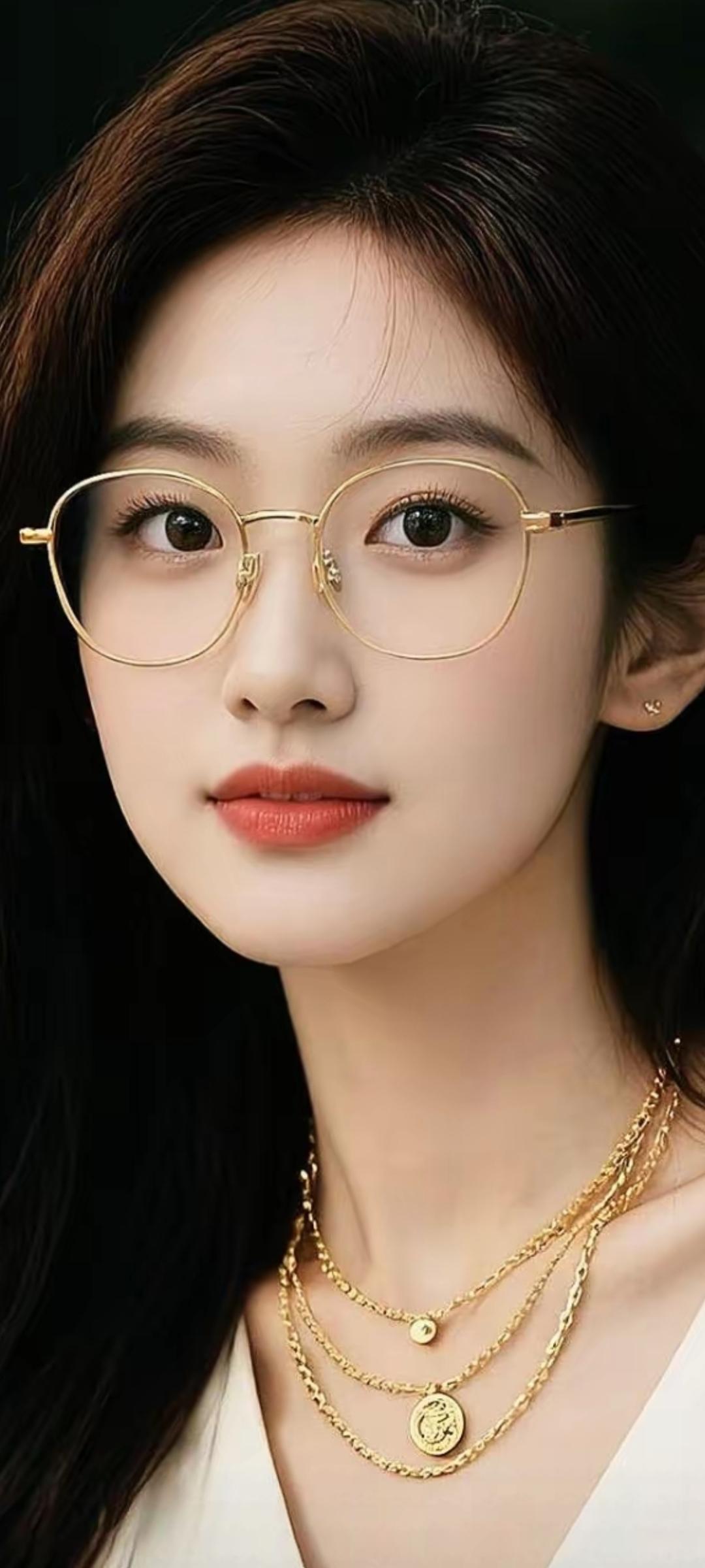 优雅气质,金饰闪耀,眼镜知性,红唇诱惑。